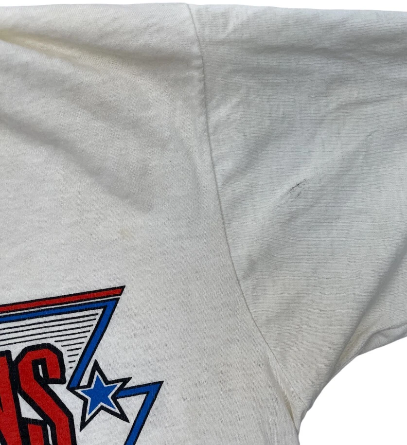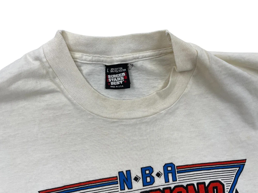 Size Type: Regular Brand: Screen Stars Color: White Pattern: Print Material: Cotton, Polyester Graphic Print: Yes Type: T-Shirt Neckline: Crew Neck Theme: NBA, Vintage Department: Men Fit: Regular Vintage: Yes Size: L Sleeve Length: Short Sleeve