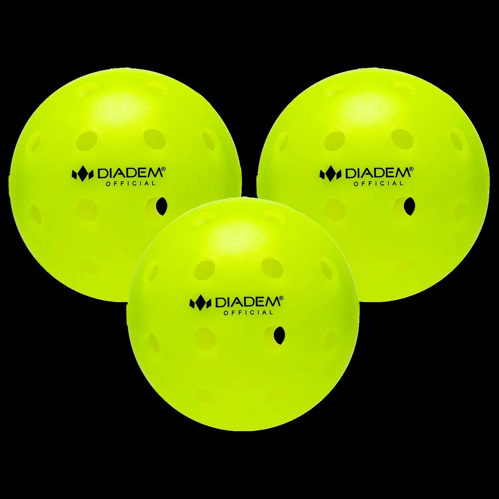 Get ready for your next pickleball game with these Diadem Official Pickleball and Power Indoor Pickleball packs. Available in packs of 3, 6, 12, and 50, these pickleballs are perfect for players of all levels. Made in China and compliant with California Prop 65 Warning, these balls are sure to provide you with a comfortable grip and a head size that is perfect for pickleball play. Whether you're a seasoned player or just starting out, these Diadem pickleballs are a great choice. With their durable construction and high-quality design, you can rely on them to help you dominate the court. So why wait? Order your pack today and start improving your pickleball game!