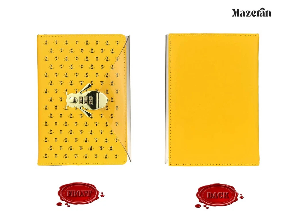 Mazeran Bee Shaped Combination Lock Journal, PU Leather Hard Cover Notebook Cute Diary, A5 Lined Password Locking Personal Planner Secret Organizer Gift for Girls Women Daughter ✓ Free 60 Day Returns ✓ Free Express Shipping Description: Features: FFEATURE DESIGN: Bee-Shaped gold tone combination lock; Super comfort feel PU leatherette Hard Cover; 8mm article ruled pages and exquisite durable satin ribbon. Creative transparent triangle buckle protects your precious ideas. INNER PAGES: ACID FREE PAPER. high quality 100 gsm thick and durable papers. Smooth writing, fountain-pen ink friendly. Ink DOESN T bleed through the page. 220 Pages (110 sheets) DIMENSION: 150 x 220mm (A5), Easy for handwriting and carrying in your bag. Perfect for taking in backpacks for nature hikes. Perfectly work as writing journal, diary, planner, general memory book, travel notebook, photo album ect GREAT GIFT: If you are looking for an cute unique gift which would make any writer excited, then our Personal Journal is your right choice. For HER (friends / daughter / wife) in any special days. Many of our customers are artists, diary lovers, poets, students, etc SATISFACTION GUARANTEED: Fall in love with the locking journal! If you don't, just return it and receive replacement or full refund; no questions asked. WE VALUE YOUR PRIORITIES Product Details: Brand: Mazeran Color: Bees Yellow Theme: Book Sheet Size: 5.8-x-8.1-inch Inches Pages: 220 Cover Material: Polyurethane (PU), Faux Leather Style: Durable Ruling Type: Plain Special Feature: Lock Product Dimensions: 8.7"L x 5.9"W x 2"Th Manufacturer: Mazeran Brand: Mazeran Item Weight: 1.21 pounds Product Dimensions: 8.7 x 5.9 x 1 inches Item model number: BJB0019 Color: Bees Yellow Cover Material: Polyurethane (PU), Faux Leather Material Type: PU leatherette Number of Items: 1 Ruling: Plain Sheet Size: 5.8-x-8.1-inch Inches Paper Finish: Smooth Line Size: 0.8 Centimeters Manufacturer Part Number: BJB0019 Date First Available: September 1, 2020