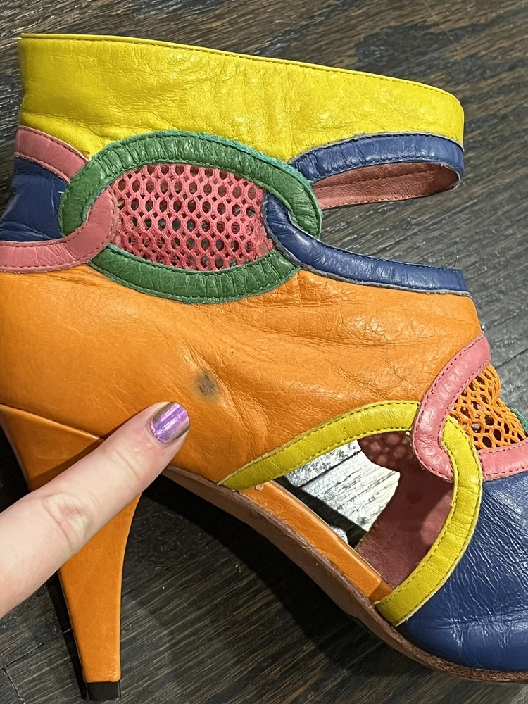 There is a small smudge from marker on one of the shoes, pictured. Good condition otherwise, with minor wear. Please review photos carefully for condition. Size 8.