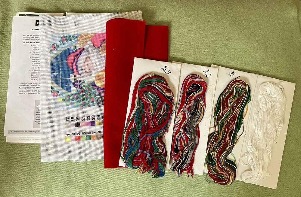 Dimensions Christmas Holiday Needlepoint Kit 9103 SANTA'S STORY STOCKING 1996. This kit is opened but hasn’t been started. It looks like the floss, yarn and filament has been sorted into 4 groups in 4 envelopes. See photos. Comes with 2 needles, canvas, instructions, felt backing, floss, in original packaging. Makes a 16” stocking. This is a lovely and rare stocking kit for that special someone. Comes with alphabet stitching guide for personalization. What a wonderful project and a labor of love to give to someone special. Sold as-is. Thank you for looking.