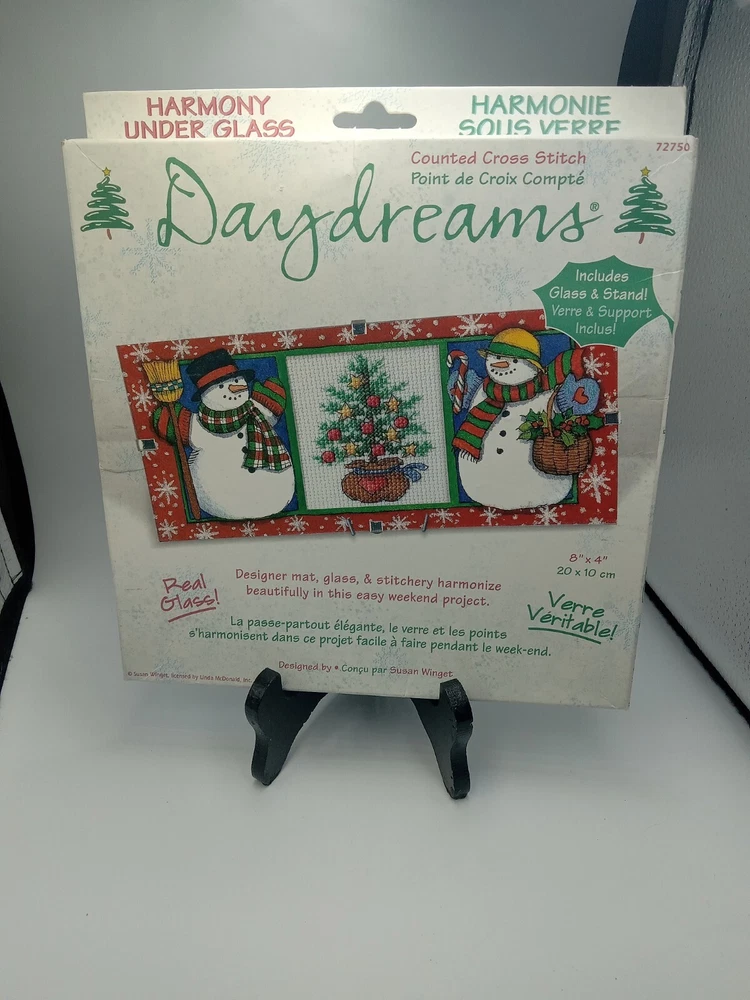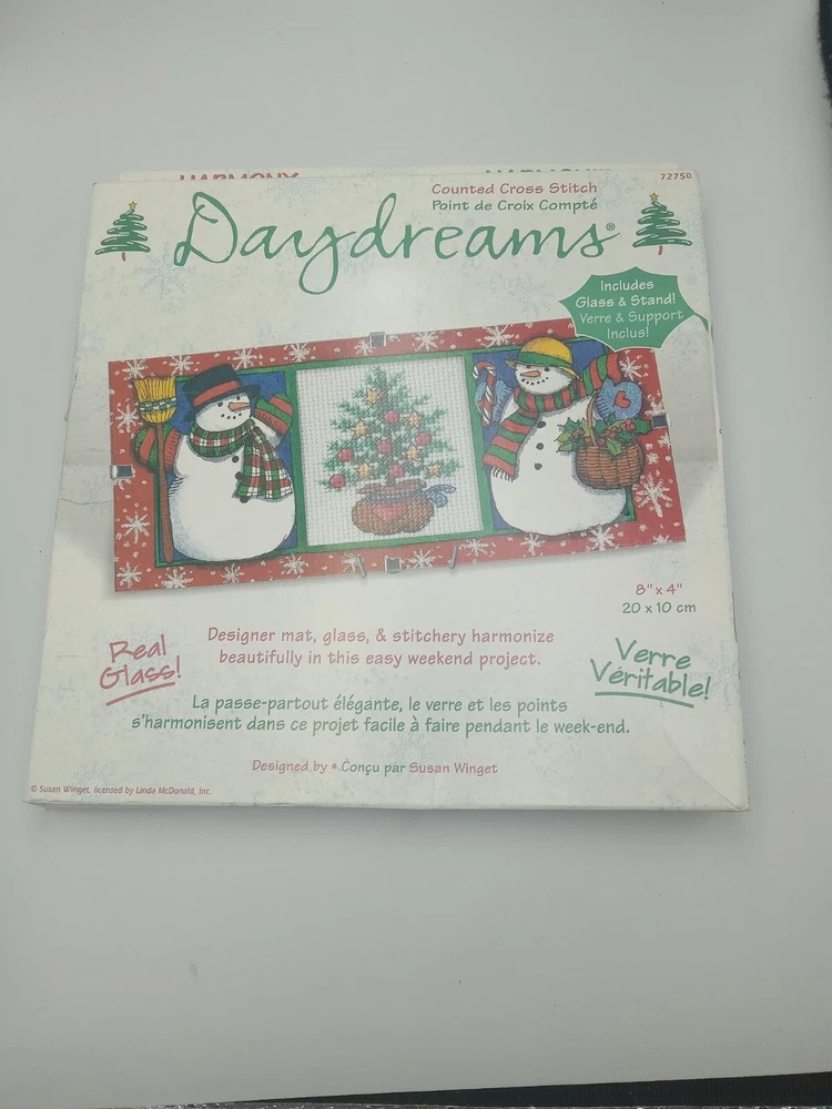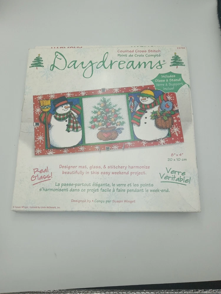 Wear on packaging...Add some holiday cheer to your home with this Dimensions Daydreams Counted Cross Stitch Kit 72750 featuring a festive snowman design. The kit includes everything you need to create a beautiful framed picture, including a pattern, needle, fabric/cloth, thread/floss, and frame. This kit is perfect for cross stitch enthusiasts or anyone looking for a fun and unique holiday project. The kit is made by Dimensions and features a sampler style with a holiday/Christmas theme. It is bundled with all the necessary items to get started, making it easy for beginners to give it a try. The kit is designed for use with framed pictures and comes with a frame included. This kit is a great way to add some personalized decor to your home or to give as a gift to a fellow cross stitch lover.