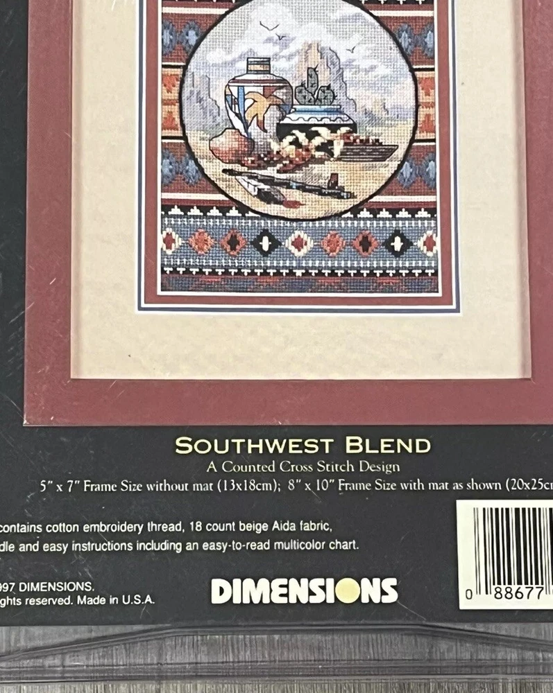 The Dimensions Gold Collection Petites Southwest Blend 6738 Counted Cross Stitch Kit features a design with a Southwest theme, ideal for craft enthusiasts. The kit includes pre-sorted thread, a needle, instructions, and fabric/cloth for creating a framed picture. Made in the United States, this kit is part of the Dimensions Gold Collection, known for high-quality cross stitch projects. Perfect for those who enjoy intricate stitching and Southwest-inspired decor, this kit offers a creative and rewarding crafting experience.