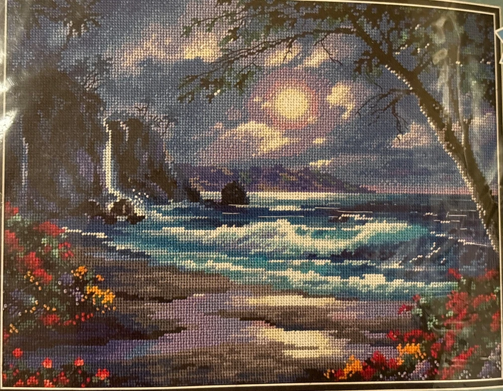 Dimensions Needlepoint MOONLIT TIDE #2498 New SEALED 16" x 12" Kit Cross stitch The Dimensions Needlepoint Moonlit Tide kit features a design capturing the essence of a beach and nautical theme. Made in the United States, this kit includes everything needed to create a 16" x 12" needlepoint artwork. The Moonlit Tide design is sealed and brand new, offering a creative and relaxing project for embroidery enthusiasts. To upcycle, I reuse shipping material as often as possible. Buy more from my store and save on shipping.