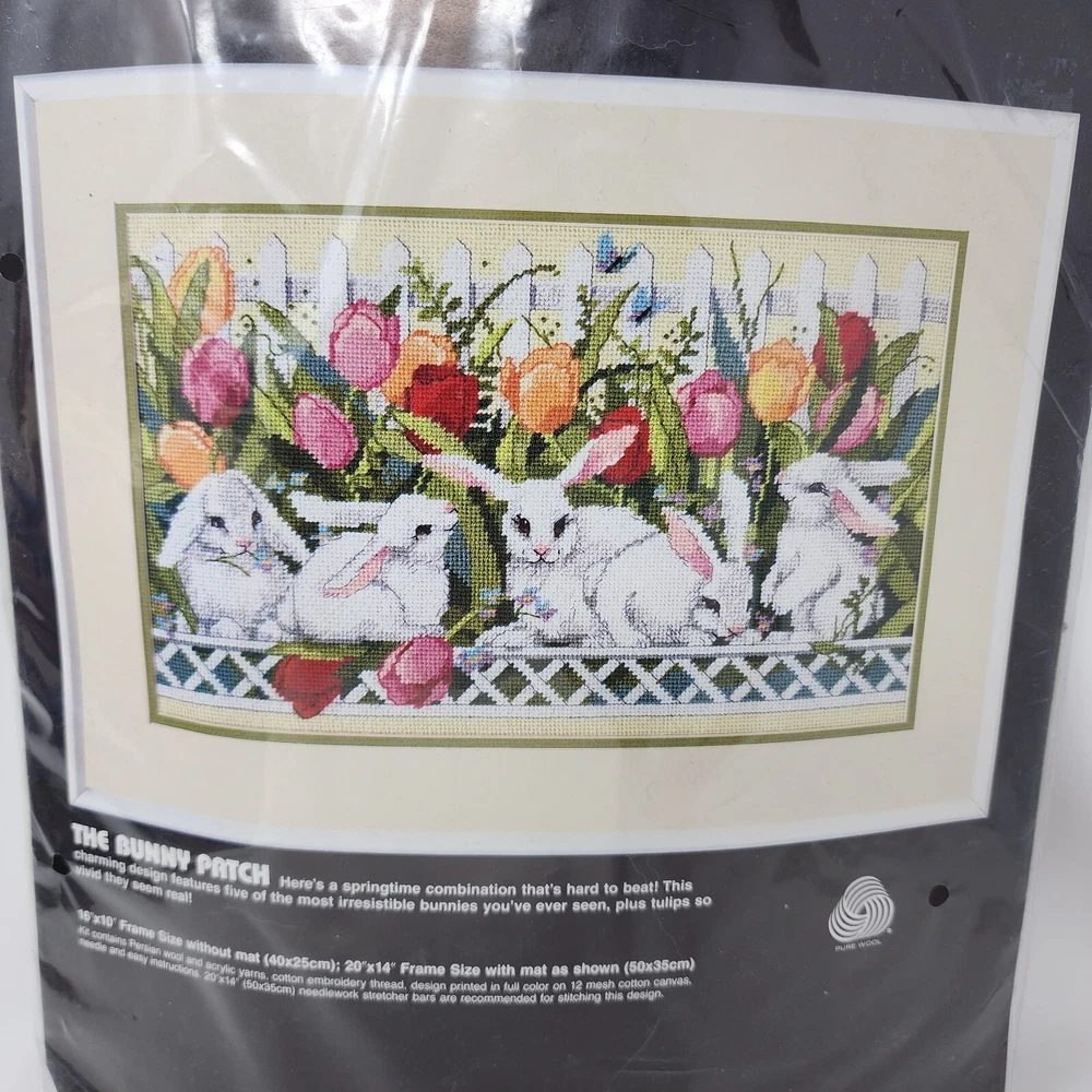 Dimensions THE BUNNY PATCH Needlepoint Kit 16" x 10" Persian Wool Yarn #2367 Brand: Dimensions Type: kit Size: frame size without mat is 16"x10" Color: multi Condition: new International customers: please note item cost and shipping does not include any import tax, VAT, customs fees or any other costs associated with the import of this item.' mb4