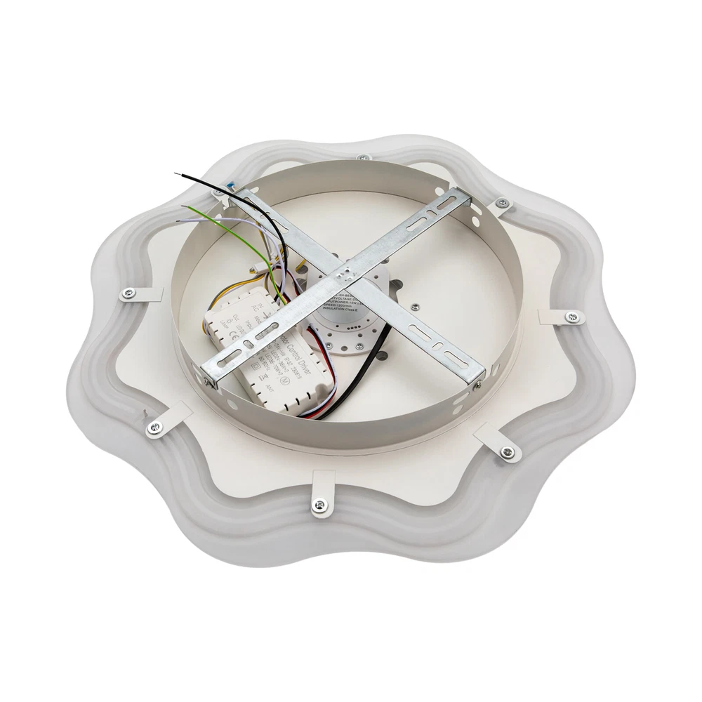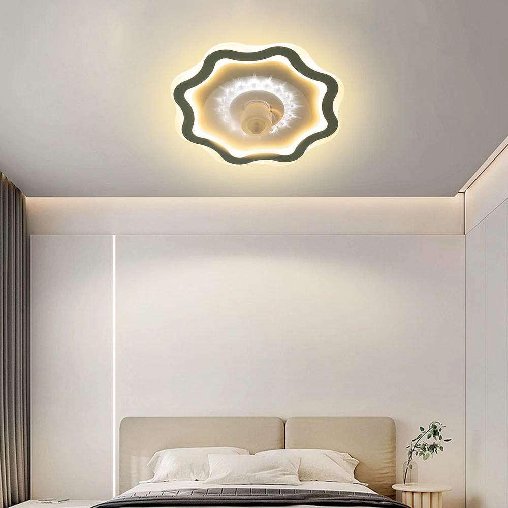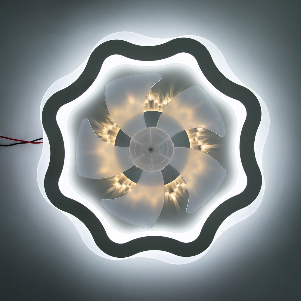 Description If you want to have both a fan and a ceiling light in your room without buying two devices, you can take a look at this high-performance fan ceiling light. Light color, fan speed, and time-setting can be easily adjusted by remote control, providing you with a smarter and more convenient life. A beautiful flower-shaped lampshade embellished with crystal-like decorations in the center will add charm to your home. 💖welcome to aaertu💖 Description Description If you want to have both a fan and a ceiling light in your room without buying two devices, you can take a look at this high-performance fan ceiling light. Light color, fan speed, and time-setting can be easily adjusted by remote control, providing you with a smarter and more convenient life. A beautiful flower-shaped lampshade embellished with crystal-like decorations in the center will add charm to your home. Key Features Long Service Life : It uses premium iron and acrylic materials and adopts high-temperature baking paint and injection molding processes, making this product rust-proof, corrosion-resistant, impact-resistant, and long-lasting. Smart Control: You can set the timing function(2 H) to have a comfortable sleeping environment and the 6-speed wind speed to experience the refreshing breeze or strong coolness through the convenient remote control, together with its memory function that remembers your last setting, simplifying your daily routine and enhancing your overall living experience. Adjustable Lighting: The 3 adjustable lighting colors(warm, neutral, and white) with color temperatures of 3000 K-4500 K, and the infinitely dimmable brightness(10-100% ) can fully meet your usage needs in different scenarios. The night mode will bring you a peaceful bedtime environment while protecting your eyesight. Reversible Function : In addition to enjoying a cool environment in summer, you can also reverse the direction of the fan in winter, blowing hot air into the room from the top and increasing the room temperature. Stylish Appearance: The crystal-shaped decoration in the center and the flower-shaped lampshade make it not only fashionable but also suitable for various modern decoration styles. Low Noise : The pure copper core motor makes it run more powerfully and steadily at low noise about 25dB, equivalent to the sound of a human whisper, providing you with a quiet environment. You can keep it working during work, sleep, or meditation. Healthy and Energy-saving : It helps reduce the frequency and time of air conditioning use, saving energy, and reducing expenses. When used together with air conditioning, it can avoid direct blowing and reduce the risk of air conditioning diseases. Easy Clean-up: The simple structure and smooth surface let you easily wipe it clean with a towel when dust accumulates. Protective Packaging: The foam can effectively reduce the normal impact and ensure that this item is fully delivered to you to the greatest extent. Details Solid Base: The enlarged ceiling base with a sturdy cross-hanging plate will bring stronger load-bearing capacity and stability. Its heat-dissipation holes also prolong the service life of the product and improve the safety of use. Translucent Fan Blades: They neither block the lighting nor affect the aesthetics of the product. Installation Steps Fix the cross-hanging plate with screws to the XXXX junction box (or mark and make holes in the ceiling, and fix the cross-hanging plate to the ceiling with 4 expansion screws). Connect the fanlight to the power cord on the ceiling with wire nuts, FireWire (Black Wire, L)-Zero Wire (White Wire, N)-Ground Wire (Yellow Wire, G), and make a one-to-one corresponding connection. NOTE: The Ground Wire hidden in the lamp base is an optional connection, not necessary. Fix the fan lamp base to the hanging plate that was previously installed on the ceiling in step 1. When powered on, use the remote control (2x AAA batteries need to be additionally purchased) to check whether the light or fan of the device works normally. Application With an applicable area of 86.11-161.46 ft² and floor height of about 7.22-11.48 ft, it is very suitable for living rooms, kitchens, bedrooms, study rooms, offices, entrances, attics, cafes, dining rooms, children's rooms, game rooms, nursing rooms, kindergartens, libraries, etc. Specification Color: White Style: Modern Shape: Flower-shaped Assembly Required: Yes Indoor/Outdoor: ‎Indoor Material: Iron, Acrylic Process: High-temperature Baking Paint, Injection Molding Light Fixture Form: Ceiling Light Control Method: ‎Remote Control, Wall Switch Battery: 2* AAA Batteries(Not Included) Light Source: LED (Included) Light Color: White, Neutral, Warm Light Color Temperature Range: 3000K-4500K Brightness: 10-100% Lumen: 2400-3600 lm Noise: About 25dB Timing: 2 Hours Voltage: 110 V Power: 24-36 W Efficiency: 4 A Level Number of Fan Blades: 5 Remote Control Distance: 5-8 m/16.4-26.25 ft Suitable Floor Height: About 2.2-3.5m/7.22-11.48 ft Applicable Area: 8-15 m²/86.11-161.46 ft² Product Size(D*H): 50*12 cm/19.69*4.7 in Package Size: 53*53*18 cm/20.87*20.87*7.09 in Gross Weight: 3.5 kg/7.72 lbs Package Included 1* Fan Ceiling Light 1* Remote Controller 1* English Instruction 1 Bag* Screws Notes Please check the dimensions of the product before ordering to ensure it fits your home. 2 AAA batteries for the remote controller are not included, you need to buy them yourself. When unpacking, be careful not to pull with the wires as a bad connection may result. For a safe and secure installation, please ensure that the electrical box is firmly mounted and properly attached to a structural part of the building. Please make sure that all wires are connected and all screws are tightened into the ceiling. Please do not turn on the power until fully assembled. Please conduct a power test before installation. We recommend installation by professionals. Wall switch(not included) can not use the memory function. Please u