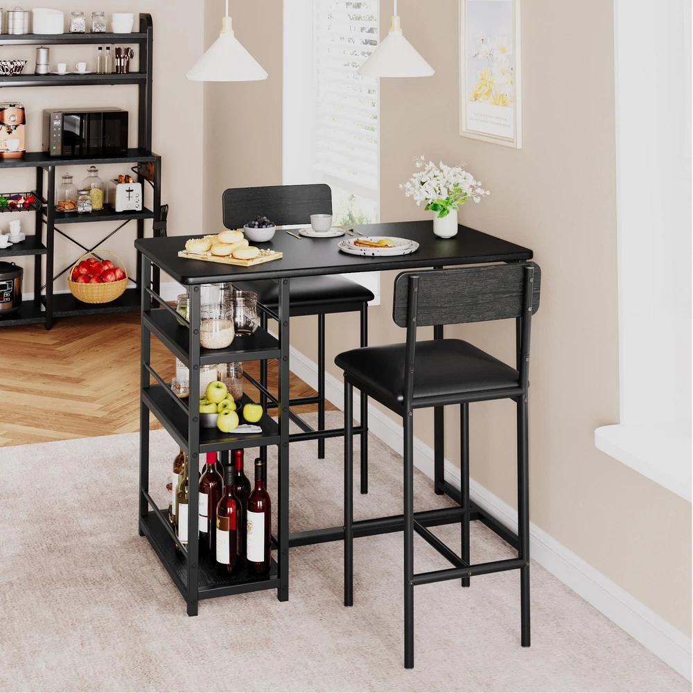 About this item Space Saving Design for Compact Living: Perfect for studio apartments, cozy breakfast nooks, or open plan spaces, this small dining table for 2 features a sleek, compact design. The chairs tuck neatly under the bar table to save space, ideal for tiny homes, lofts, or small kitchens. Table Size: 36"L x 19.6"W x 36"H; Chair Size: 14.5"L x 16.5"W x 37.4"H. A modern, functional solution for intimate dining areas without compromising on style. Comfortable Seating for 2 with Ergonomic Design: This small kitchen table for 2 includes 1 high top kitchen table and 2 chairs with curved backs for lumbar support and thick padded seats more comfortable than traditional wooden chairs. Enjoy romantic dinners, casual brunches, or morning coffee in comfort. The bar height design adds a contemporary touch, enhancing small space dining experiences for small households Durable & Stable Construction for Daily Use: Built to last, the bar table and chairs feature a robust steel frame and high quality MDF board with a scratch resistant finish, withstand daily meals, family game nights, and gatherings. The sturdy structure ensures reliable stability, making it a practical choice for busy homes. Perfect for indoor use in dining rooms, kitchens, or home offices. Ample Storage & Easy Maintenance: Stay organized with 3 built in storage shelves on the bar height table, ideal for storing tableware, snacks, or cookbooks. The waterproof, anti corrosive surface wipes clean effortlessly perfect for quick cleanup of spills, sauces, or dust. Durable and low quick assembly hassle free upkeep. Easy Assembly & Maintenance: Comes with clear instructions and all tools needed for easy setup. The waterproof coating and smooth finish simplify maintenance, ensuring the set stays in pristine condition. A must have for busy individuals or renters seeking a functional, easy to manage bar table with stools that balances convenience and durability. Product Description Built-in lockers Three spacious storage shelves underneath the dining table with frames made of thick metal and high quality particle board keep your table organized and clutter free! Large, sturdy tabletop Featuring a heavy-duty steel frame and high-quality MDF tabletop to ensure long-lasting durability and stability, this bar table set has a large tabletop that provides plenty of room for 2 to 4 people. Enjoy a good time Comfortable upholstered seats Upholstered barstools with ergonomically curved backs and thick cushions provide exceptional comfort, ideal for romantic dinners, early morning coffee or remote work. Payment Delivery details Terms of sales About us Contact us Payment We accept payment either via PayPal or any of the following credit cards; Visa, MasterCard, Discover, and American Express. Delivery details 1. We will delivery out at the handing time when we receive the payment. 2. The delivery time is 3-5 business days to US by usually time.The parcel maybe delay 1-2day of the weekend.Due to the bad weather,Holidays,Hot Season ect.the parcel maybe delay,If you have any problems,mssage us,we will try our best to solve it. 3. We ship to your eBay address. Please make sure your eBay address is correct before you pay. 4. If you want to change the shipping address,message us before our send out. Terms of sales If you are not satisfied with the item for any reason, please do not quick to leave negative/neutral feedback even open request and case without any communication with us. We devote ourselves making EVERY CUSTOMER in 100% Satisfactory and resolve any problem. Thank you for your understanding and recognition,we are always leave positive feedback to all our customers. About Reply: All replies will be sent to your email box, if you do not get response within 24 hours (Sat. & Sun. excluded) please check your eBay My Messages in case that our emails will be filtered automatically by your settings. About us automobilee-01 is a brand new store but we are one of North America’s top online suppliers of specialized, high-quality aftermarket online retailers and suppliers, committed to developing new markets. We primarily offers tool sets, auto parts, home goods, etc..With over 20 years of product selection and manufacturing experience, we delivers unparalleled quality, value, service and satisfaction. Our highly-trained, professional staff offer in-depth knowledge and personalized assistance for customers worldwide. Providing our customers with a simple, hassle-free experience with best-in-class customer service is more than a goal. Contact us Any problem please rest assure to contact us by eBay message first. We will reply you as soon as we can. We will deal with it within 24hs on working days. Brand Unbranded Set Includes Dining Table, Chairs Room Dining Room MPN Does not apply Department Adults Shape Rectangular Mounting Freestanding Assembly Required Yes Features Space Saving, Sturdy and Durable, with 2 Upholstered Chairs, Large Sturdy Tabletop Number of Items in Set 3 Seating Capacity 2 Style Contemporary/Modern Material Metal, MDF Board, Artificial Leather Model Dining Table Set Table Dimensions 36” L x 19.6” W x 36.1” H Chair Dimensions 14.5” L x 16.5” W x 37.4” H Number of Shelves 3 Seat Height 25.5 in Manufacturer Warranty 5 Years