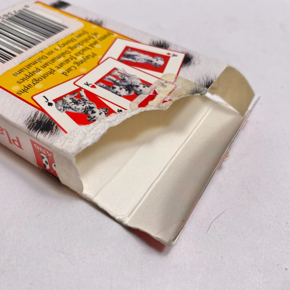 Complete 52 card deck plus 3 jokers. Top of box is torn as pictured. Photos show the actual items you will receive.