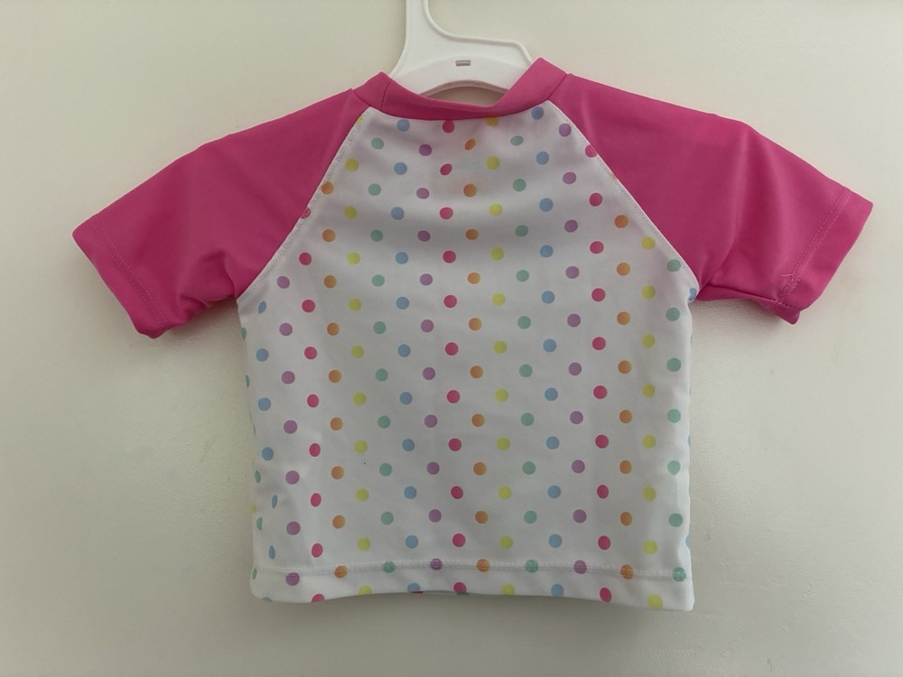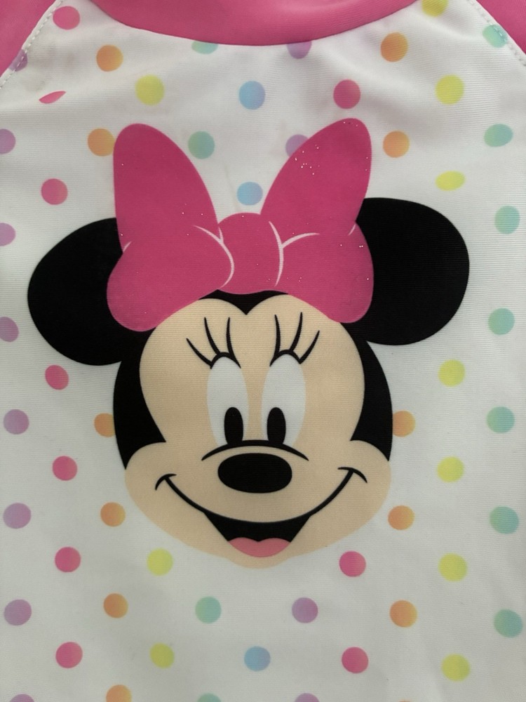 Disney Baby Girls Rainbow Polka Dot Minnie Mouse Raglan Sleeve Swim Top Pink 12M. Condition is pre-owned. Smoke free, pet free home. Shipped via USPS Ground Advantage. In good condition. There are light stains on the front. Free of rips.