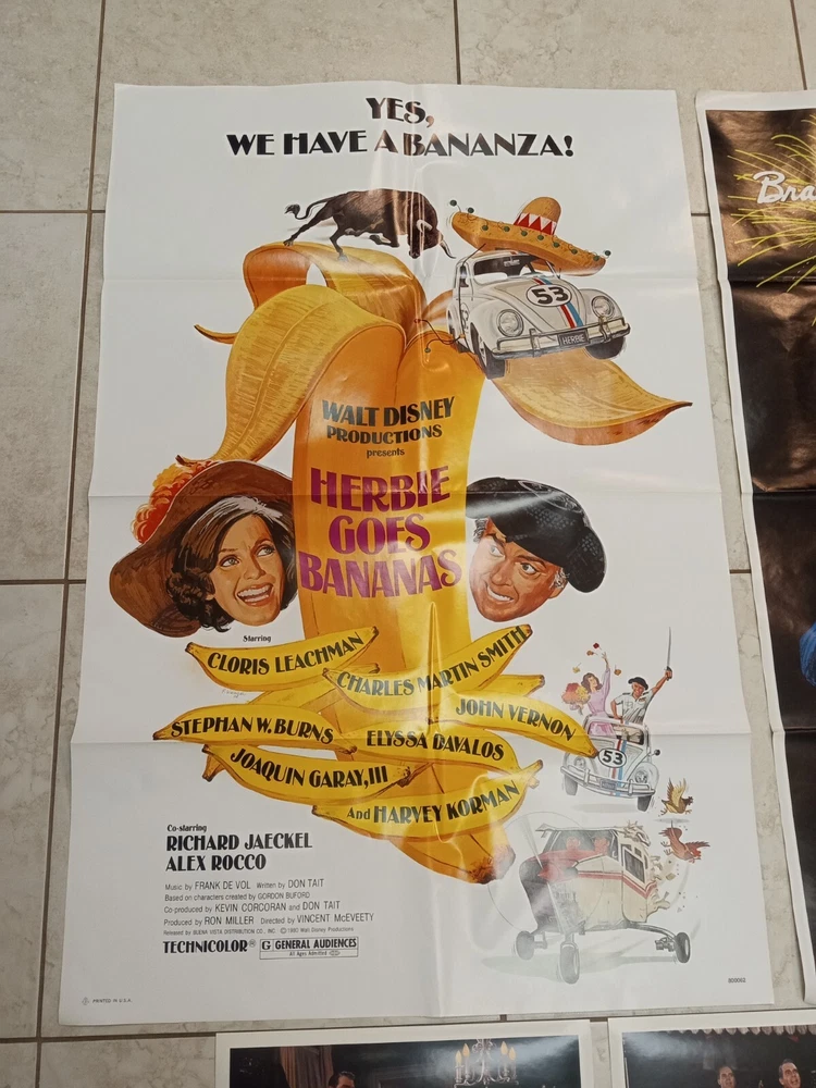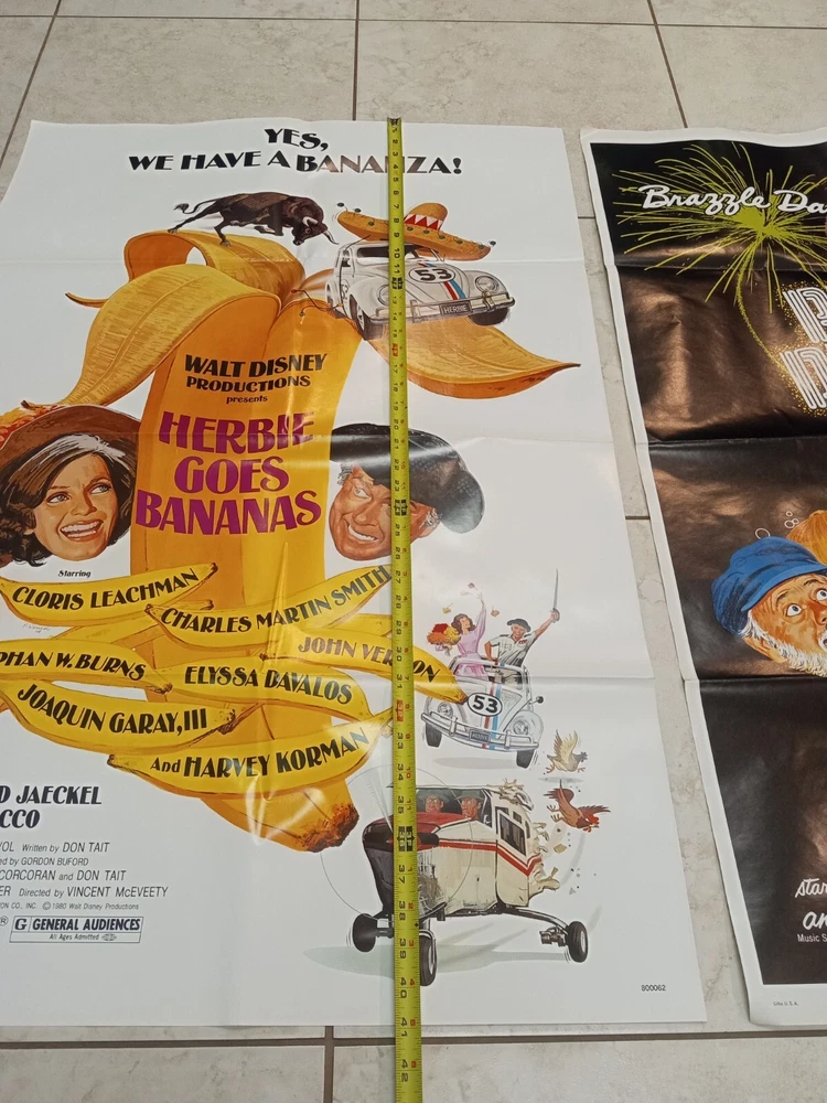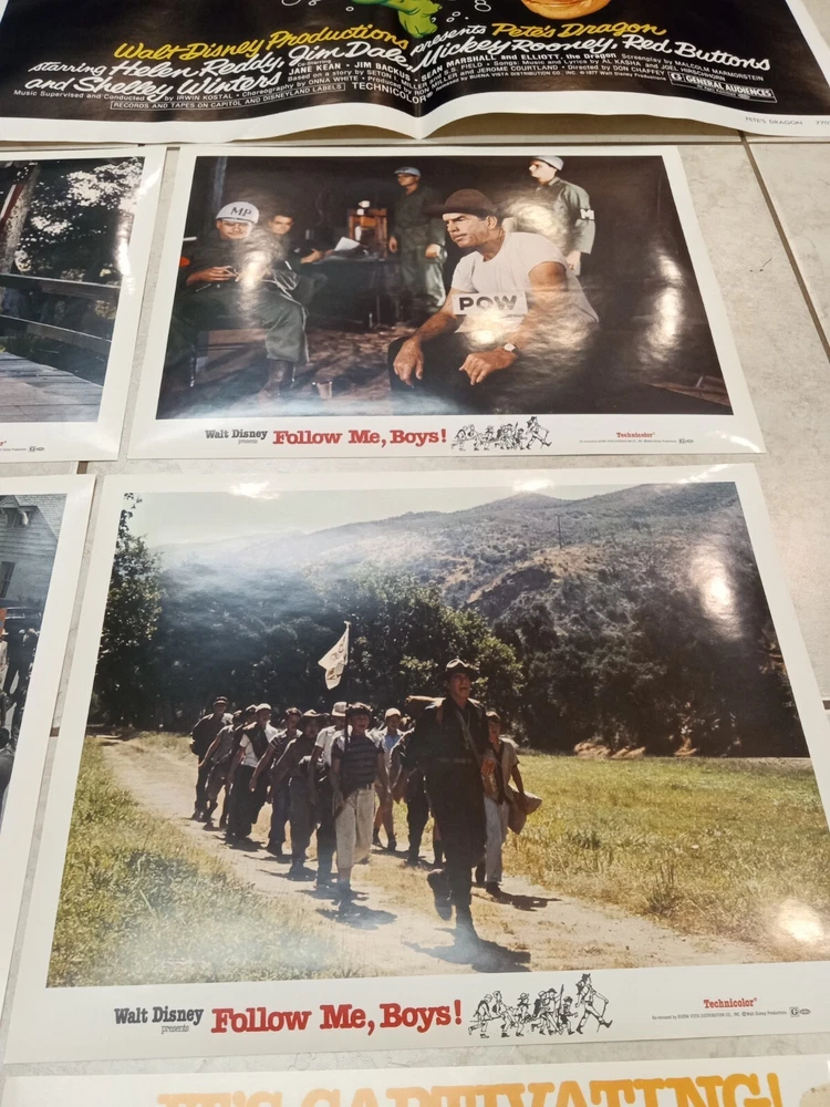 Stored in a basement may have a slight musty smell. An original 1980 Herbie Goes Bananas & An original 1977 folded one sheet Pete's Dragon movie poster, both 41"x 27", also included are 8 full color original Follow Me Boys photos starring Kurt Russell, 11" x 14", SMOKE FREE HOME, FREE SHIPPING FREE SHIPPING!!!