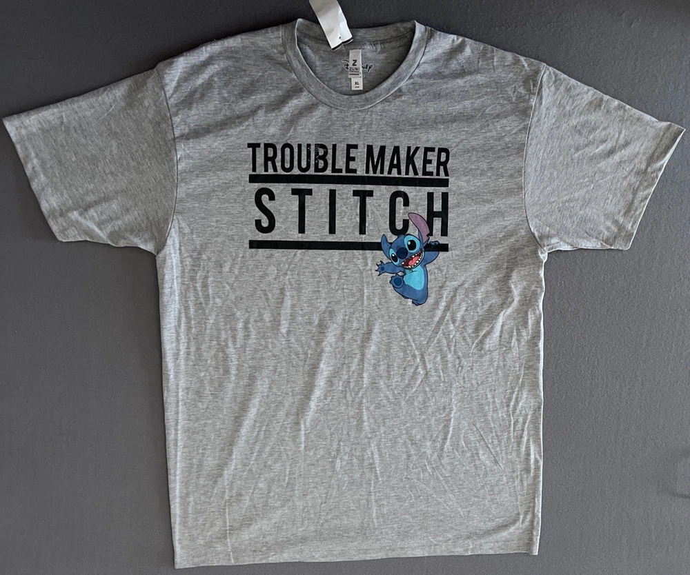 Disney Lilo & Stitch Trouble Maker T-shirt XL Gray Short sleeve NWT