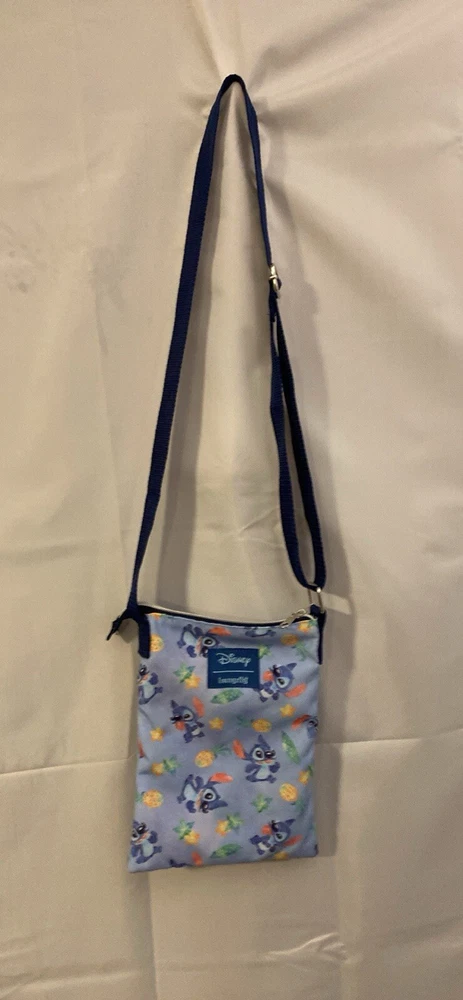 This Disney Loungefly crossbody bag is a must-have for any Lilo & Stitch fan. The bag features a watercolor design of Stitch, adding a cute and unique touch to your outfit. The bag is small in size, making it perfect for carrying your essentials while on the go. The bag is made by Loungefly, a well-known brand in the Disneyana collectibles category. The bag is also a part of the Contemporary (1968-Now) subcategory, making it a modern and trendy accessory. The bag is multicolored and features the Disney franchise, making it a perfect addition to any Disney lover's collection. In excellent condition! No rips or pen marks inside.