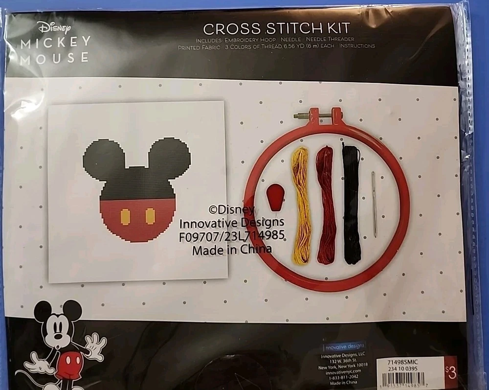 Add some charm to your home decor with this Disney Mickey Mouse Cross Stitch Kit from Innovative Designs. The kit includes everything you need to create a beautiful cross stitch of Mouse Ears, the iconic accessory of every Disney fan. Made in China, this kit is perfect for those who love cartoons and characters, and want to add a unique touch to their collection. With the brand name of Innovative Designs, you can be sure that this kit is of high quality and will provide hours of fun. It is perfect for those who love to work on crafts and have a passion for cross stitching. This kit is a must-have for all Disney lovers and will make a great addition to your collection.