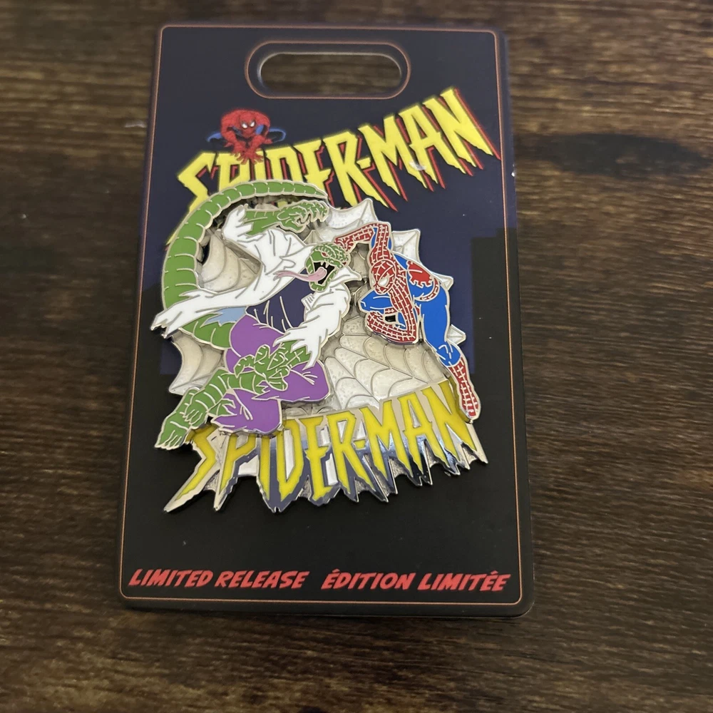 The Disney Parks Marvel Studios Comic Animated Spider-Man Lizard Doctor Connors Pin is a collectible Disneyana item featuring characters from the Marvel franchise. Specifically, this pin depicts Spider-Man, Lizard, and Doctor Connors in an animated style. Released in 2022, this pin is part of the Disney Parks collection, making it a sought-after item for Disney and Marvel fans alike.