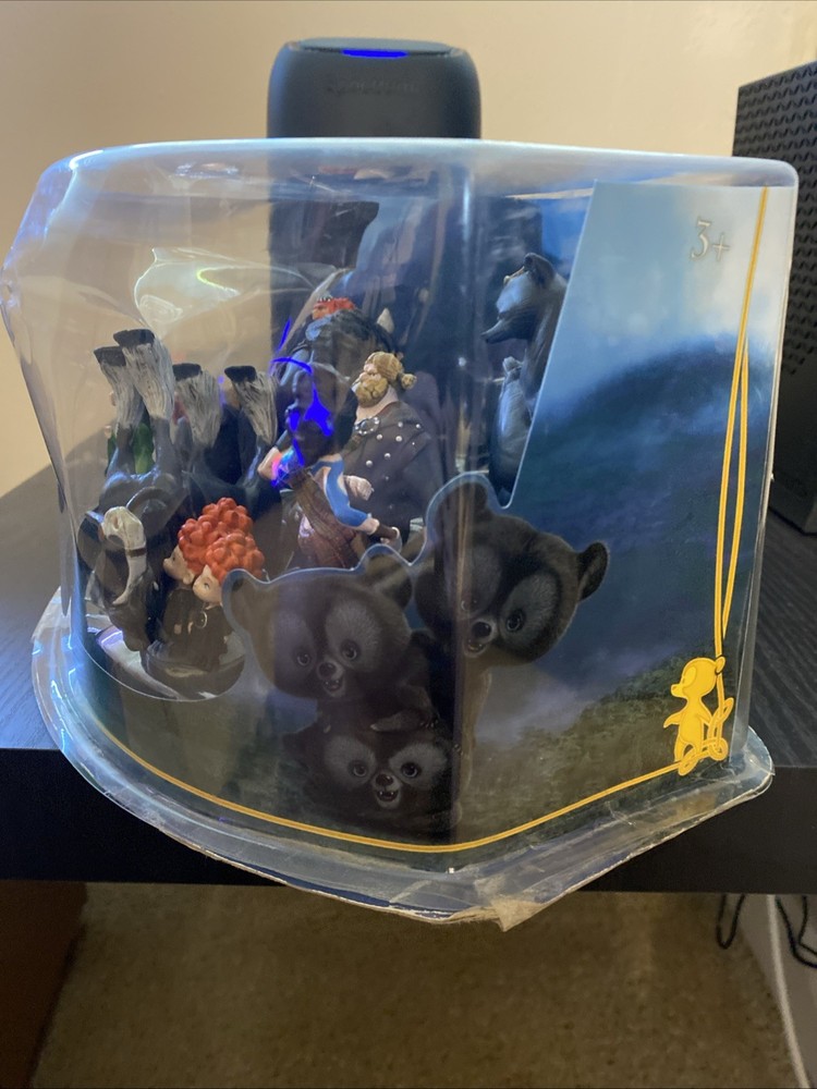 Disney set! BRAVE deluxe figurine set The box has been in rough condition but hasn’t been opened! There is tape along the bottom holding the bottom together, dents in the plastic, and holes .