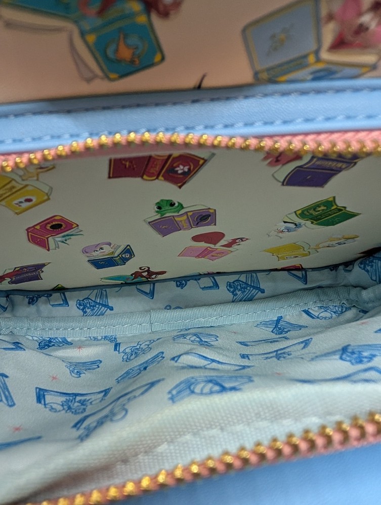 Hit the books like a real Disney Princess: effortlessly! Maintain a smart and stylish look with this Disney Princess Books Classics Mini Backpack. The front zipped compartment of the bag displays gold-detailed spines of books for classic tales that include Beauty and the Beast, Aladdin, Sleeping Beauty, Cinderella, and Snow White and the Seven Dwarfs. The cream-colored background carries a motif of each princess’s pals really getting into Disney Princess books. You might be able to spot Abu, Sebastian, Lumiere, Cri-Kee, Jaq, a very thoughtful squirrel, Pascal, Ray, Dopey, and Flit. It measures approximately 9" Wide x 10.5" High x 4.5" Deep. (Please note: width is measured across the bottom of the bag.) We are a smoke-free, pet friendly home. All bags are kept in a temperature controlled room inside a silk storage bag (included with your order). I will ship out quickly and package your item with care. Thank you and have a great day!