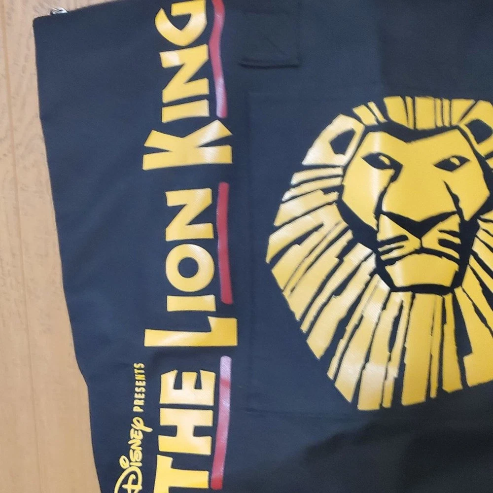 Immerse yourself in the grandeur of Disney's The Lion King with this Black Broadway Musical Zip Tote Bag. Crafted from durable canvas, this tote bag is both stylish and functional, providing ample space for all your essentials. Designed with a spacious interior, this tote bag is perfect for carrying your belongings with ease. Whether you're heading to work, school, or a day out, this bag can accommodate your needs. The sturdy strap ensures comfortable and secure carrying, while the decent-sized front pocket offers convenient access to smaller items. With the iconic Lion King Broadway Musical design, this tote bag pays homage to the timeless tale and its extraordinary legacy. The black color adds a touch of elegance and versatility, making it a perfect accessory for any occasion. Carry the spirit of The Lion King wherever you go, and let this zip tote bag become a treasured reminder of the powerful story and music that touched your heart. Embrace the roomy practicality and sturdy construction of this Broadway Musical Zip Tote Bag and showcase your love for the majestic world of Disney's The Lion King today! Size: Measurements are approximate Condition: Well worn. With the zipper pull frayed Have a magical day Pet-free, smoke-free home.