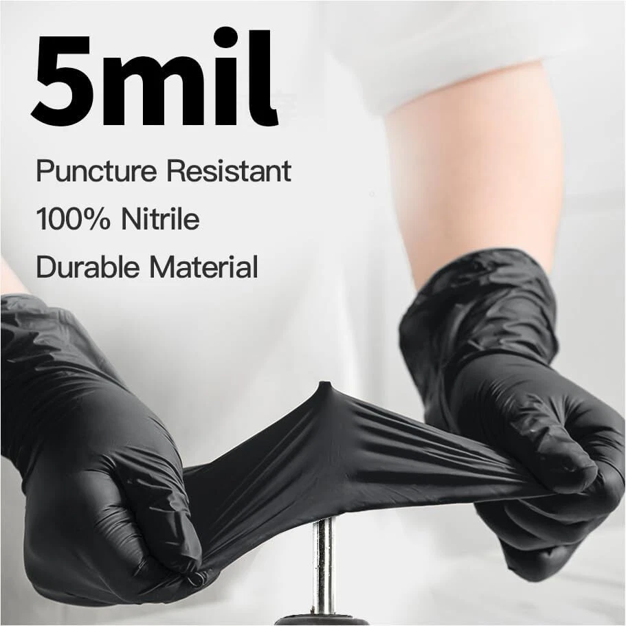 HomeDisposable Nitrile Exam Gloves, 5 Mil Chemical Resistant Black (Large 100)