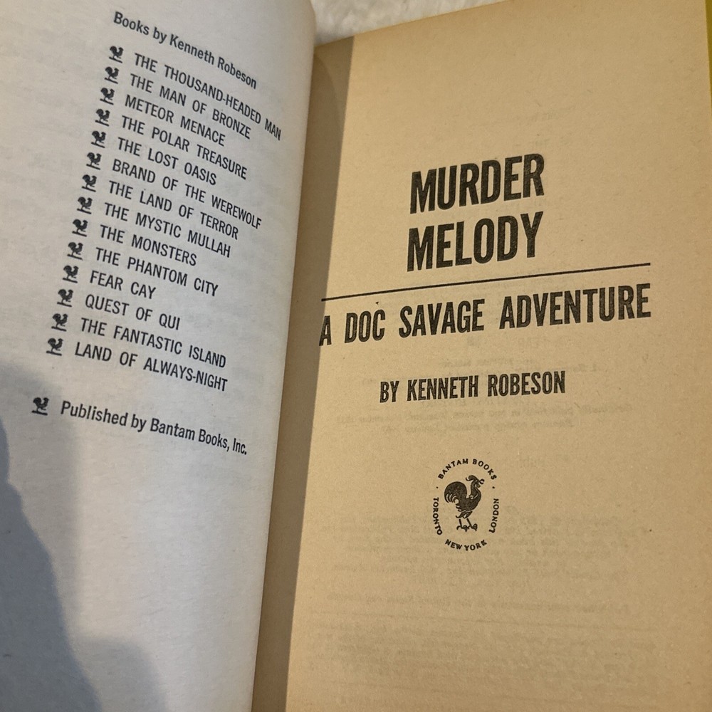 Doc Savage #15 Murder Melody Kenneth Robeson Bantam Books 1967.