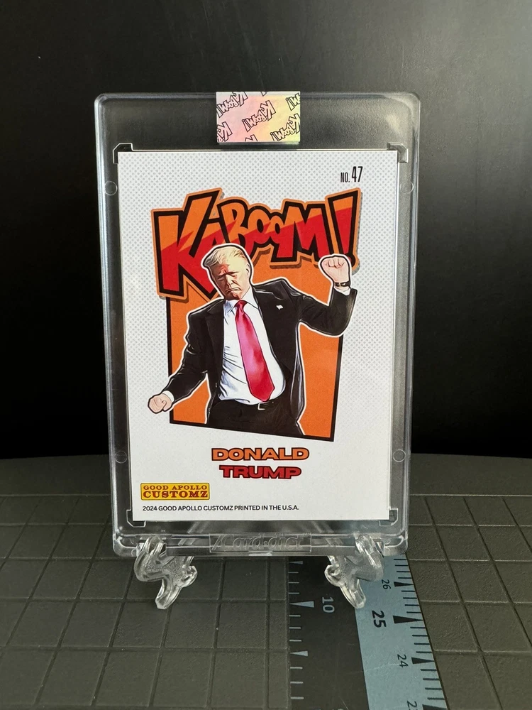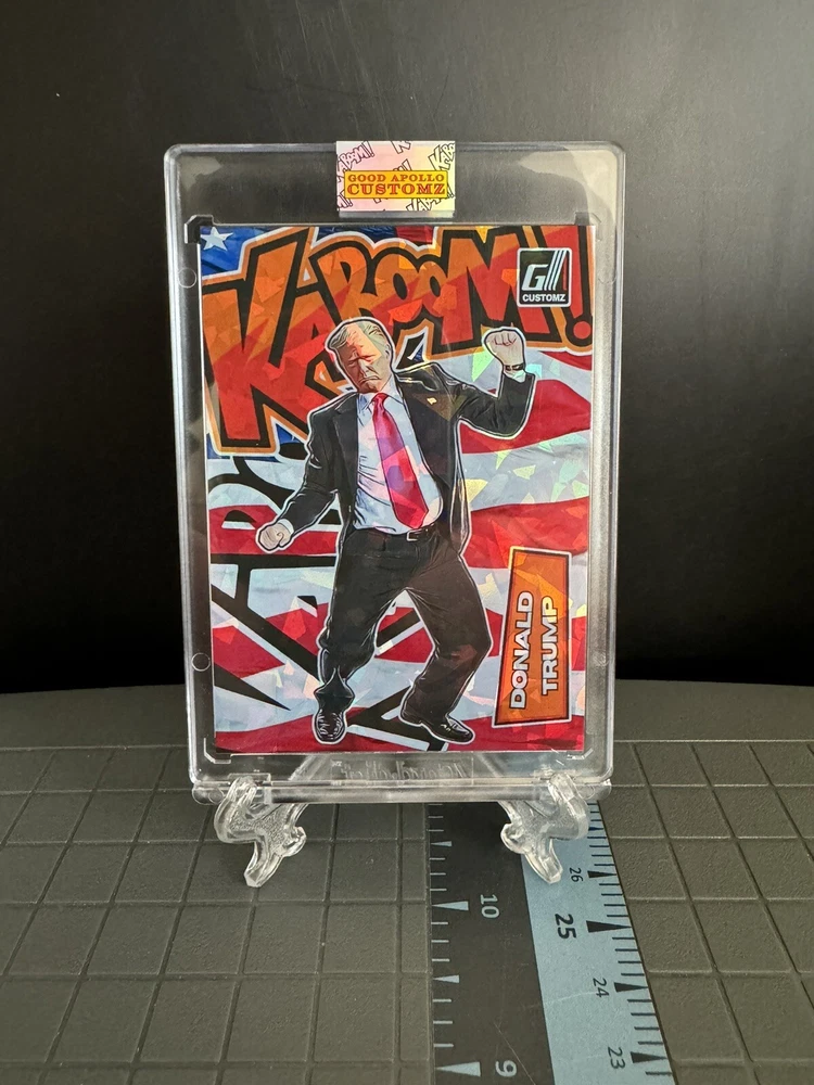 This is a custom designed novelty trading card created by Good Apollo Customz. The card comes enclosed in a sealed magnetic case and measures approximately 2.5 by 3.5 inches. Thanks for your interest and supporting our business!