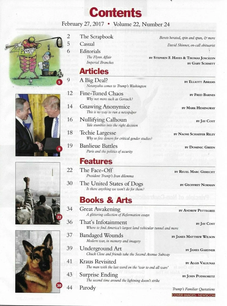 Donald Trump The Weekly Standard Magazine Iran Benjamin Netanyahu Dogs 2017 .