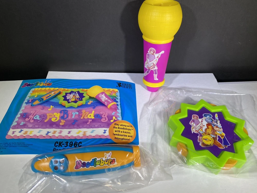 Doodlebops Microphone Tamborine Kazoo Instruments Cake toppers Toys. These adorable toys all function and are new. They have been opened to photograph. Please ask all questions before buying. Thank you!
