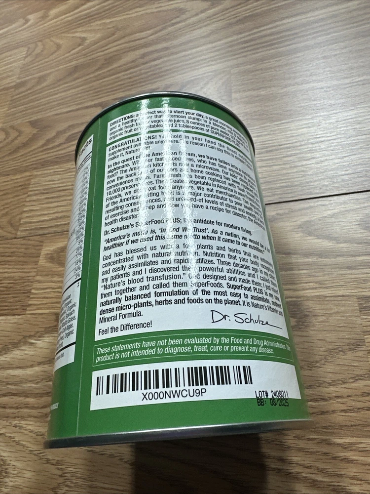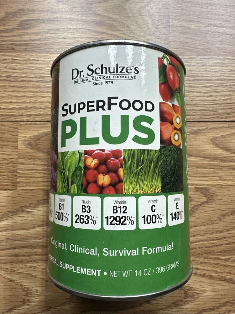 Dr. Schulze’s SuperFood Plus | Vitamin and Mineral Herbal Concentrate | Daily Nutrition | Gluten-Free and Non-GMO | Vegan | 14 Ounce Powder | Packaging May Vary SUPERFOOD POWERHOUSE: Contains 15 of the world's most powerful superfoods. One serving of SuperFood Plus delivers an unrivaled dose of rapidly assimilating vitamins and minerals while offering the body an extraordinary powerful supply of enzymes and nutrients packed into one source. INCREASED ENERGY: Blast every cell in your body with nutrient-rich organic vitamins and minerals that give your body more energy than ever with over 1200% vitamin B12. SuperFood Plus is a naturally balanced formulation of the most nutrient dense micro-plants, herbs and foods on the planet. ADDED BENEFITS: SuperFood Plus provides many benefits which promote better overall health to the human body. Powerful nutrition creates powerful health! PURE, POTENT & PROVEN: Our selection of pure organic or wild-harvested ingredients is unrivaled with 15 of the world’s most powerful superfoods which include wild harvested spirulina algae, organic blue green algae, chlorella broken cell algae, organic barley grass, organic alfalfa grass, organic wheat grass, organic purple dulse seaweed and many more. NATURAL REVOLUTIONARY PRODUCTS: Dr Schulze is one of the foremost authorities on natural healing and herbal medicine. Dr Schulze’s herbal formulas and programs have been used by hundreds of thousands in clinics around the world with life changing results. These formulas contain no soy, sugar, whey and are non-GMO, vegan, gluten-free and dairy-free. Dr. Schulze's SuperFood Plus blasts your body with a rich supply of nutrients that are formulated to increase energy and overall vitality. SuperFood Plus is also protein rich for your daily workout needs with over 40% protein by volume! Herbal Ingredients: *Wild Harvested Spirulina Algae - protein, antioxidants, B-vitamins and iron *Organic Blue-Green Algae - dietary protein, B-vitamins, and iron *Chlorella Broken-Cell Algae - used to improve digestion and to colon-related diseases *Organic Barley Grass - vitamins, minerals, fiber, protein, enzymes and amino acids *Organic Alfalfa Grass - vitamins, minerals and protein and chlorophyll used by body builders *Organic Wheat Grass - thought to be an effective healer, especially for muscular and cellular repair, provides minerals and vitamins, protein and chlorophyll *Organic Purple Dulse Seaweed - contains lots of minerals thought to lower blood pressure and contribute to bone mineral density *Organic Acerola Cherry - high in vitamins, especially vitamin C *Organic Rose Hips - also high in vitamin C *Palm Fruit - for antioxidants, vitamins and minerals *Organic Lemon Peel - vitamins, minerals and fiber *Organic Orange Peel - vitamins, minerals and fiber, thought to benefit the immune system *Organic Beet Root - vitamins, minerals and fiber *Organic Spinach Leaf - rich in antioxidants and vitamins A, B2, C and K; also contains magnesium, manganese, folate, iron, calcium and potassium *Non-Fermentable Saccharomyces - protein and B vitamins; contains all nine essential amino acids *Cerevisiae - good source of chromium for blood sugar levels and B vitamins; considered a probiotic which may aid digestion Shipping We offer FREE shipping on all orders! We ship within Three business days of payment, usually sooner. We use a selection of shipping services such as UPS, FedEx, USPS etc. We only ship to the lower 48 states, no APO/FPO addresses or PO Boxes allowed. Local pickups and combined shipping options are not provided at this time. Return You can return a product for up to 30 days from the date you purchased it. Any product you return must be in the same condition you received it and in the original packaging. Please keep the receipt. Payment We accept payment by any of the following methods: PayPal Please pay as soon as possible after winning an auction, as that will allow us to post your item to you sooner! Feedback Customer satisfaction is very important to us. If you have any problem with your order, please contact us and we will do our best to make you satisfied. Contact Us If you have any queries, please contact us via ebay. We usually respond within 24 hours on weekdays. Please visit our eBay store to check out other items for sale! Thank you for shopping at our store.