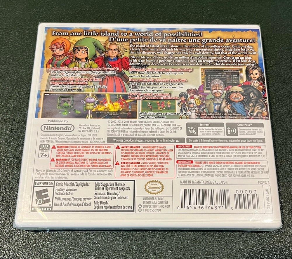 Dragon Quest VII: Fragments of the Forgotten Past for Nintendo 3DS is a captivating role-playing game released in 2016. Embark on an epic adventure filled with mystery, magic, and monsters as you journey through the vast world of Dragon Quest. With its engaging storyline, charming characters, and immersive gameplay, this game is a must-have for any fan of the RPG genre. Dive into a rich fantasy world and uncover the secrets of the past in this exciting installment of the beloved Dragon Quest series.