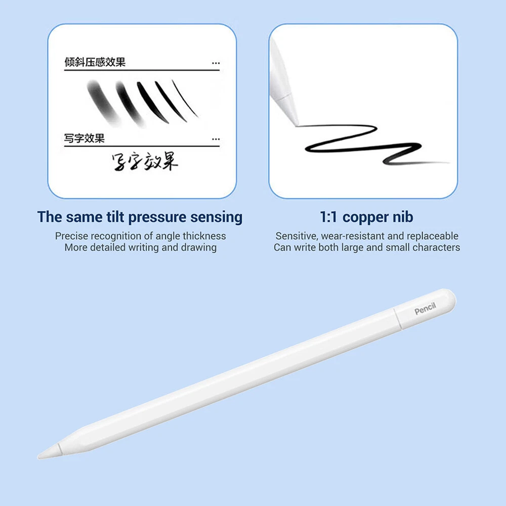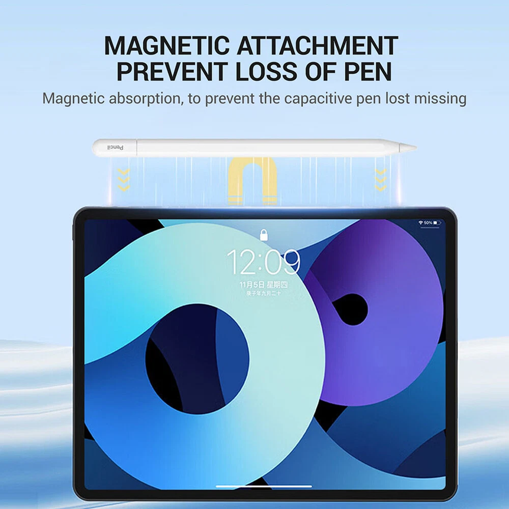 Product Description Features: -Bluetooth display: Through Bluetooth connection, the battery level is displayed in real-time, allowing you to keep track of usage and no longer worry about low battery. -Magnetic charging: It adopts a magnetic charging design, which is convenient and fast. With just a gentle suction, you can start charging. Say goodbye to tedious insertion and removal operations, and make your use more efficient. -Full screen anti accidental touch: The specially designed anti accidental touch function allows you to no longer be troubled by accidental touch during full screen operation, ensuring that every operation is accurate and error free. -Sensitive without delay: A highly sensitive touch experience with no delay response, allowing you to enjoy a smooth and smooth experience while drawing, taking notes, or any touch operation. Specifications: -Type: Writing pen -Quantity: 1 piece -Color: White -Applicable:fit for iPad Pro / Air 11" 13" 2024 for iPad 5/6/7/8/9/10th Gen 2017-2022 for iPad Pro 1/2/3/4th Gen 11" 2018-2022 for iPad Pro 3/4/5/6th Gen 12.9" 2018-2022 for iPad Mini 5/6th Gen 2019/2021 for iPad Air 3/4/5th Gen 2019-2022 Packaging included: 1 * Writing pen 1 * Product manual