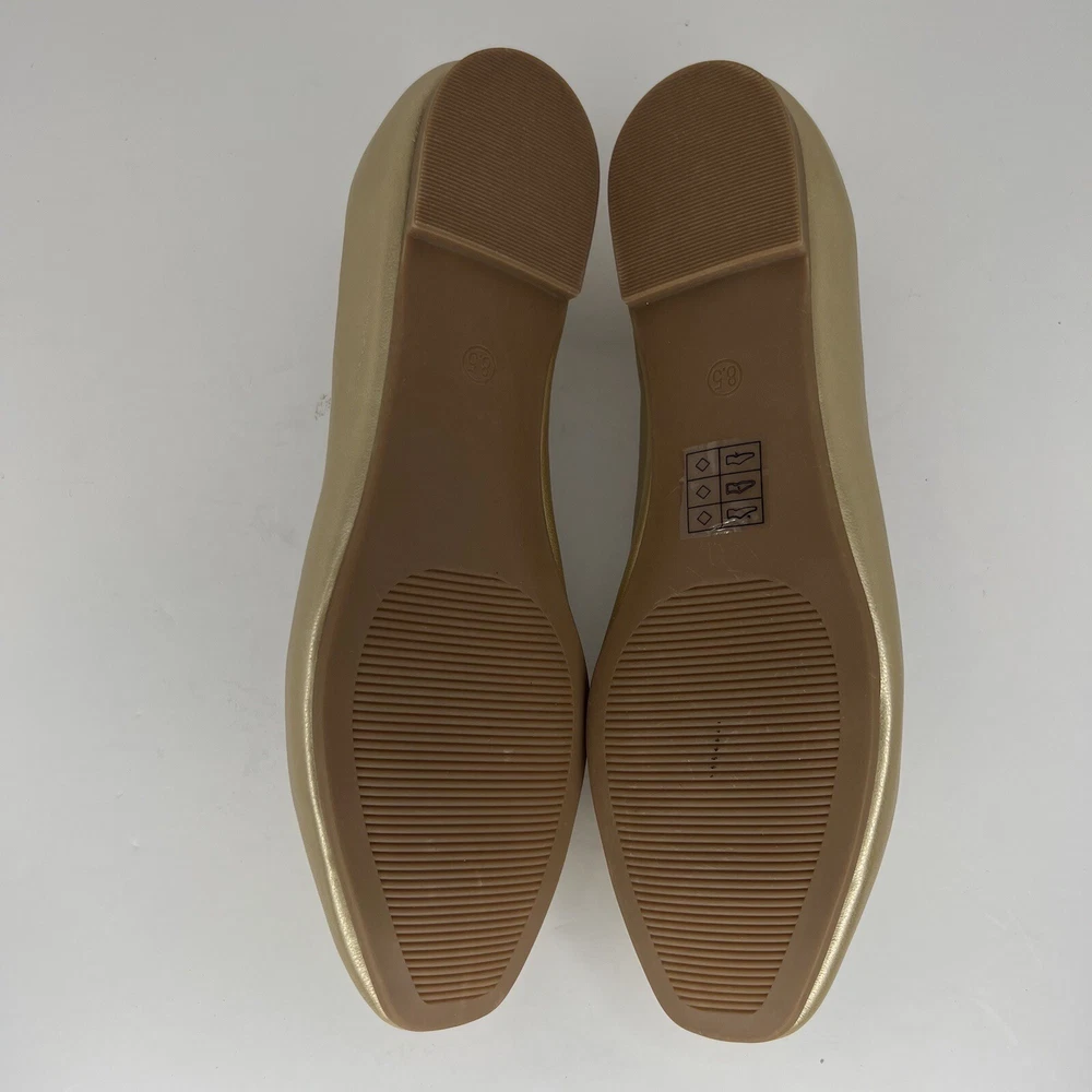 Elevate your slipper game with these stunning Dream Pairs Sole Elle ballet slipper shoes. The glistening gold color and solid pattern make them a chic addition to any outfit. The almond toe shape and slip-on closure provide both comfort and convenience, while the flat heel style and rubber outsole material ensure durability and stability. These women's slipper shoes by Dream Pairs feature synthetic upper and lining materials, with a standard shoe width and synthetic insole material for added comfort. Perfect for any season, these slipper shoes are suitable for winter, summer, fall, and spring. Add a touch of metal-themed glamour to your wardrobe with these stylish and versatile ballet slipper shoes. 100% CUSTOMER SATISFACTION IS OUR GOAL! Our items are always carefully examined for condition, measured if necessary, and photographed in a climate controlled and smoke-free environment. We make every attempt to accurately describe and clearly picture the items we have for sale. Please, ALWAYS view all of the photos. We value your business and our goal is your complete satisfaction. FAST SHIPPING All items are packaged with care and shipped out the same or next business day via USPS, FEDEX, or UPS with tracking numbers so you are always informed. RETURNS We offer a 30-day return policy. All items must be unused and unopened in the condition in which they were received, with original packaging, and all accessories included for return. REVIEWS - CUSTOMER SATISFACTION - COMMUNICATION We aim to make you happy. After you receive your shipment, please leave a positive review . If you have concerns or questions about your order, please contact us so we can resolve the issue. We will do our best to make you satisfied. THANK YOU FOR YOUR BUSINESS!