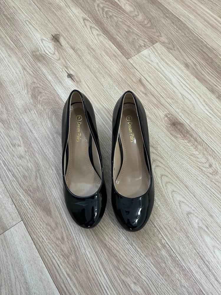 Man made materials Heel height: 2.5" (approx) Platform height: 0.1" (approx) Round Toe, Slip On Latex padded insole for added comfort As new - worn 1 time