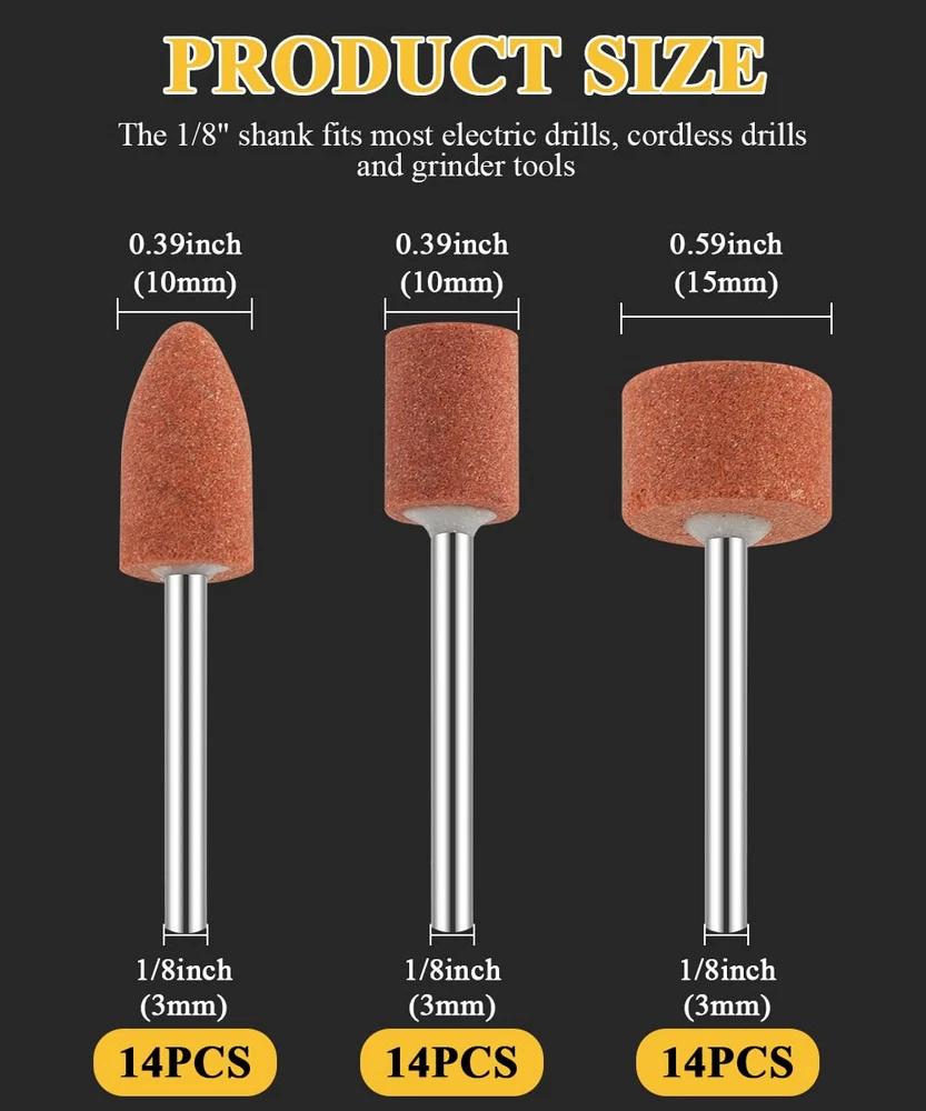 Store New Arrivals Add to Favorite View Feedback Contact Sanding Bits for Dremel Rotary Tool, Grinding Stone Sanding Drill Bits with 1/8" Shank, Aluminium Oxide Tough Enough to Metal Rust Removal/Smoothing/Sharpening, Different Shape Meet More Needs, 42Pcs Description Item model number 87962314025 Grit Number 80 Product Dimensions 7.2 x 4.84 x 0.71 inches; 6.7 ounces Compatible Devices Die Grinder Grit Material Aluminum Oxide Grit Type Medium Brand FOTYBEI Manufacturer FOTYBEI Wide Application - Rotary Tool Sanding Bits can be used for a variety of applications like sharpening lawn mower blades, screwdriver tips, knives, scissors, chisels and other cutting tools. Use to remove flash from metal castings, deburring any metal after cutting, smoothing welded joints, grinding off rivets and removing rust Different Shape Meet More Needs - Made into 10mm bullet shape, the grinding wheels for drill fit into tight spaces. Ideal for sanding after beveling holes in metal and wood. Made into 10mm and 15mm cylinder shape are ideal for smoothing, sharpening, deburring and other grinding and shaping needs More Durable - Made with aluminum oxide, A high-quality industrial abrasive made for extended use, making this Bits tough enough to smooth out most materials including stainless steel. It has plenty of shank for the collet or chuck to hold onto for proper attaching. And, this durable, grinding stone can be cleaned and restored to its original shape after extended use, longer tool life and more efficient grinding Wide Compatibility - Features a 1/8" shank, making the Grinding Stone suitable for most Dremel Rotary Tool, and other electric drills, cordless drills, die grinders What You Get - 14 Pcs 10mm cylinder shape, 14 Pcs 15mm cylinder shape, 14 Pcs 10mmbullet shape, and comes with a reusable clear storage case, and our provide friendly customer service, If YOU have any problems, please feel free to contact our customer services team, solutions would be within 24 hours Product Description 42 Pieces Abrasive Mounted Stone Grinding bits for Rotary Tool Materials: Corundum Sand + Metal Shank diameter: 1/8inch Grinding stone: 10mm cylinder shape, 15mm cylinder shape, 10mm bullet shape.(14 Pcs each size) Package contents: 42 pieces grinding bits Strong & Durabale The grinding stone for drill can be cleaned and restored after long-term use. They are stronger, sharper and more durable. Excellent Sanding Effect Excellent rust removal for rusty items, Ideal for polishing and grinding of metal and stainless steel. Universal Shank Size The 1/8'' shanks abrasive wheels are suitable to be used in electric drills, cordless drills, die grinders tools. Tips 1. When installing the grinding head, please make sure the chuck can hold 3mm shank. Meanwhile, you can use a special wrench to tighten properly and check whether it is firm and strong. 2. Wear protective equipment correctly during operation.Idling for 1-2 minutes after installation to make sure everything is normal. 3. During the grinding, the operator should stand on top of the workpiece to prevent it from flying, chipping and hurt. 4. Use the grinding head, the force should be increase slowly. If the force is too strong, the grinding head will get stuck and broken,even the machine motor will burn out. The grinding should maintain about 30° and move the grinding bits back and forth at a uniform speed. What You Get 10mm Cylinder Shape x 14 15mm Cylinder Shape x 14 10mm Bullet Shape x 14 with a clear storage case ABOUT US We offer the best prices around on high quality products. Our E-store includes media such as books, movies, music and games while offering electronics, toys, sporting apparel, clothing, tools, general home, garden items and more. SHIPPING We are always working hard to ensure your package arrives as soon as possible. Please understand that some factors like weather, high postal traffic, and the performance of shipping companies are outside of our control. We offer free shipping to the lower 48 states and ship within 2 business days of payment, usually sooner. We do not accept P.O. Boxes. Please provide a physical address. RETURNS We offer a 30-Day Return Policy on items which you are not completely satisfied with. You have the option for a full-refund or an exchange of the item. No returns are available on items shipped outside of the USA. PAYMENT We accept PayPal. CONTACT US This page content is yet to come Please ad us to your favorite seller and visit again later Thank You CUSTOMER SATISFACTION We try our very best to make sure every customer is completely satisfied. If there's a problem, message us! We're happy to help.