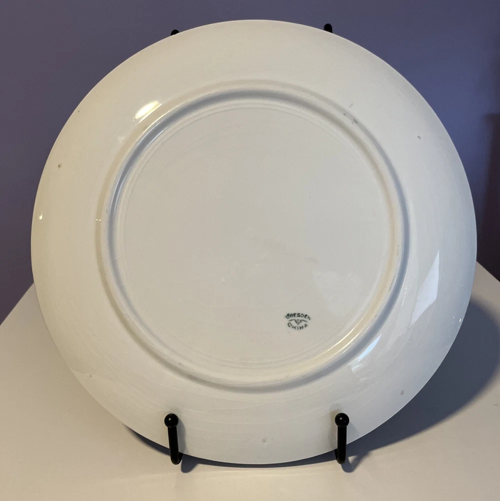 Dresden China Large Green w/ Gold Fruit or Serving Plate with Green and Purple Grapes Signed Daudin on front printed Dresden on back - Dimensions: 10.5” diameter This was in my mother’s collection purchased in 1994 from antique store. Only on display shelf or stores since purchase. Slight crazing due to age on back. Please review all pictures carefully as they are part of the description. Questions are welcome.