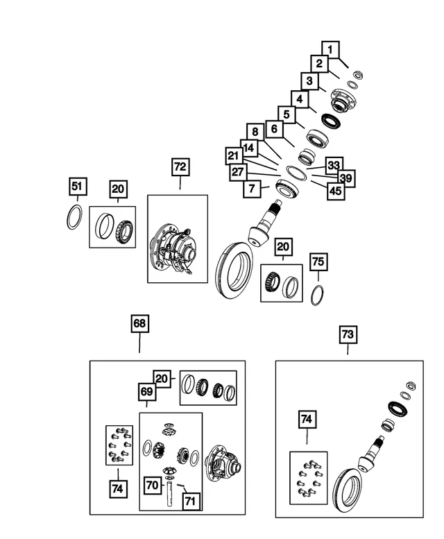 Message Us BRAND NEW MOPAR GENUINE ORDERS ARE SHIPPED SAME DAY IF PLACED BEFORE 5 PM EST If Express or Expedited shipping is not available, please contact us. GENUINE MOPAR PART # 68400362AA Drive Pinion Bearing Kit, Inner Key Features: Quality and Fit OEM Standards 100% Genuine Part Ready to Order? Don't miss out on this high-quality, genuine part. Order now and enjoy fast shipping! If you are not sure this will fit your vehicle, please message us your VIN before ordering to verify compatibility. FOR: Year Make Model Body & Trim Engine & Transmission 2025 Jeep Gladiator Mojave, Mojave X, Rubicon, Rubicon X, Sport, Sport S, Willys 3.6L V6 - Gas 2024 Jeep Gladiator Mojave, Mojave X, Rubicon, Rubicon X, Sport, Sport S, Willys 3.6L V6 - Gas 2024 Jeep Wrangler Rubicon, Rubicon X, Sport, Sport S, Unlimited High Altitude 4xe, Unlimited Rubicon 4xe, Unlimited Rubicon X 4xe, Unlimited Sahara, Unlimited Sahara 4xe, Unlimited Sport S 4xe, Unlimited Willys 4xe, Willys 2.0L L4 - Electric/Gas, 2.0L L4 - Gas, 3.6L V6 - Gas 2023 Jeep Gladiator Freedom, High Altitude, Mojave, Overland, Rubicon, Sport, Sport S, Texas Trail, Willys, Willys Sport 3.0L V6 - Diesel, 3.6L V6 - Gas 2023 Jeep Wrangler Freedom, Rubicon, Sport, Sport S, Unlimited High Altitude, Unlimited High Altitude 4xe, Unlimited Rubicon 4xe, Unlimited Sahara, Unlimited Sahara 4xe, Unlimited Sahara Altitude, Unlimited Willys 4xe, Willys, Willys Sport 2.0L L4 - Electric/Gas, 2.0L L4 - Gas, 3.0L V6 - Diesel, 3.6L V6 - Electric/Gas, 3.6L V6 - Gas 2022 Jeep Gladiator Altitude, High Altitude, Mojave, Overland, Rubicon, Sport, Sport S, Texas Trail, Willys, Willys Sport 3.0L V6 - Diesel, 3.6L V6 - Gas 2022 Jeep Wrangler Rubicon, Sport, Sport S, Unlimited High Altitude, Unlimited High Altitude 4xe, Unlimited Rubicon, Unlimited Rubicon 392, Unlimited Rubicon 4xe, Unlimited Sahara, Unlimited Sahara 4xe, Unlimited Sahara Altitude, Unlimited Sport, Unlimited Sport Altitude, Unlimited Sport S, Unlimited Willys, Unlimited Willys Sport, Willys, Willys Sport 2.0L L4 - Electric/Gas, 2.0L L4 - Gas, 3.0L V6 - Diesel, 3.6L V6 - Electric/Gas, 3.6L V6 - Gas, 6.4L V8 - Gas 2021 Jeep Gladiator 80th Anniversary, High Altitude, Mojave, Overland, Rubicon, Sport, Sport S, Texas Trail, Willys, Willys Sport 3.0L V6 - Diesel, 3.6L V6 - Gas 2021 Jeep Wrangler 80th Anniversary, Freedom, Islander, Rubicon, Sport, Sport S, Unlimited 80th Anniversary, Unlimited Freedom, Unlimited High Altitude, Unlimited High Altitude 4xe, Unlimited Islander, Unlimited Rubicon, Unlimited Rubicon 392, Unlimited Rubicon 4xe, Unlimited Sahara, Unlimited Sahara 4xe, Unlimited Sahara Altitude, Unlimited Sport, Unlimited Sport Altitude, Unlimited Sport S, Unlimited Willys, Unlimited Willys Sport, Willys, Willys Sport 2.0L L4 - Electric/Gas, 2.0L L4 - Gas, 3.0L V6 - Diesel, 3.6L V6 - Electric/Gas, 3.6L V6 - Gas, 6.4L V8 - Gas 2020 Jeep Gladiator Altitude, Launch Edition, Mojave, Overland, Rubicon, Sport, Sport S 3.6L V6 - Gas 2020 Jeep Wrangler Rubicon, Sport, Sport S, Unlimited Rubicon, Unlimited Sahara, Unlimited Sport, Unlimited Sport S 2.0L L4 - Electric/Gas, 2.0L L4 - Gas, 3.0L V6 - Diesel, 3.6L V6 - Electric/Gas, 3.6L V6 - Gas 2019 Jeep Wrangler Rubicon, Sport, Sport S, Unlimited Moab, Unlimited Rubicon, Unlimited Sahara, Unlimited Sport, Unlimited Sport S 2.0L L4 - Electric/Gas, 3.6L V6 - Gas 2018 Jeep Wrangler Rubicon, Sport, Sport S, Unlimited Moab, Unlimited Rubicon, Unlimited Sahara, Unlimited Sport, Unlimited Sport S 2.0L L4 - Electric/Gas, 3.6L V6 - Gas