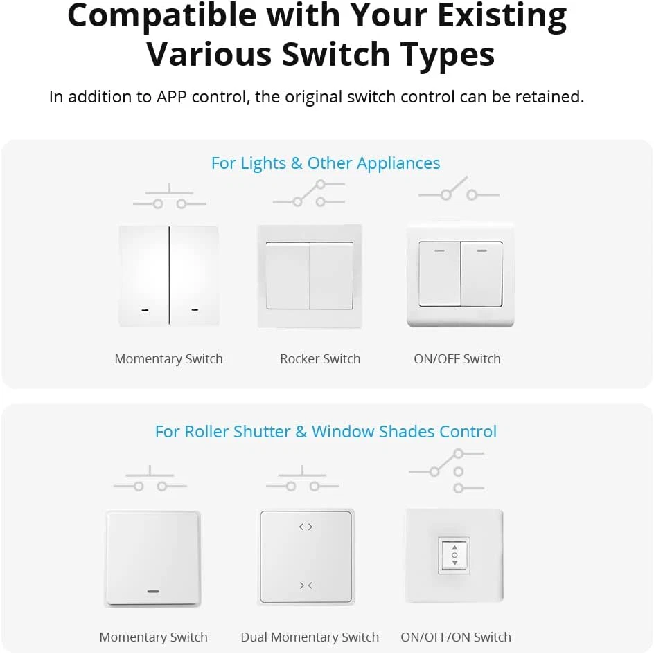 Store New Arrivals Add to Favorite View Feedback Contact DUALR3 Lite Smart Switch Moudle,Wifi Smart Curtain Switch,Dual Relay DIY Curtain, Blinds, Roller Shutter,Two Way Smart Switch,Compatible with Alexa&Google Assistant(1 Pack) Description Item model number DUALR3 Warranty Description 1 year Current Rating 5 Amps Number of Items 1 Power Source AC Upper Temperature Rating 100 Degrees Fahrenheit Control Method Voice Terminal Screw Batteries Included? No Operating Voltage 2.4E+2 Volts Contact Material Brass Number of Positions 5 Controller Type Push Button Unit Count 1.0 Count Connectivity Protocol Wi-Fi Circuit Type 2-way Is Discontinued By Manufacturer No Switch Type Push Button Material Acrylonitrile Butadiene Styrene Item Package Quantity 1 Item dimensions L x W x H 3 x 5 x 6 inches Country of Origin China Mounting Type Wall Mount Specification Met CE Connector Type Clamp Item Weight 2.46 ounces Size 1 Pack Part Number 6920075776966 Color White Wattage 1E+1 Operation Mode OFF-NONE-ON Voltage 240 Volts (AC) Actuator Type Push Button Batteries Required? No Contact Type Normally Closed Included Components 1* DUALR3 Lite Product Dimensions 3 x 5 x 6 inches Number Of Pieces 1 TUV certifications ensure a safer and more reliable. Roller Shades Motor Control,Let your electric curtains, roller blinds, etc become smart immediately. Double two-way control of two devices independently DUALR3 Lite has the motor mode and switch mode that meet the needs of different application scenarios. Remote, timing, voice control, smart scenes, and other functions are all available. Remotely control home appliances or motorized facilities Product Description ABOUT US We offer the best prices around on high quality products. Our E-store includes media such as books, movies, music and games while offering electronics, toys, sporting apparel, clothing, tools, general home, garden items and more. SHIPPING We are always working hard to ensure your package arrives as soon as possible. Please understand that some factors like weather, high postal traffic, and the performance of shipping companies are outside of our control. We offer free shipping to the lower 48 states and ship within 2 business days of payment, usually sooner. We do not accept P.O. Boxes. Please provide a physical address. For shipping outside of the continental USA, we only use eBay's Global Shipping Program.The item is shipped to KY and then sent to the rest of the world. International customers are responsible for all duties and taxes. Continue to check out in order to calculate costs for shipping the item to your country. Messages regarding eBay's Global Shipping Program MUST be directed at eBay EXCLUSIVELY. RETURNS We offer a 30-Day Return Policy on items which you are not completely satisfied with. You have the option for a full-refund or an exchange of the item. No returns are available on items shipped outside of the USA. PAYMENT We accept PayPal. CONTACT US This page content is yet to come Please ad us to your favorite seller and visit again later Thank You CUSTOMER SATISFACTION We try our very best to make sure every customer is completely satisfied. If there's a problem, message us! We're happy to help. WE ACCEPT Copyright © 2021 AutoDS. | All Rights Reserved