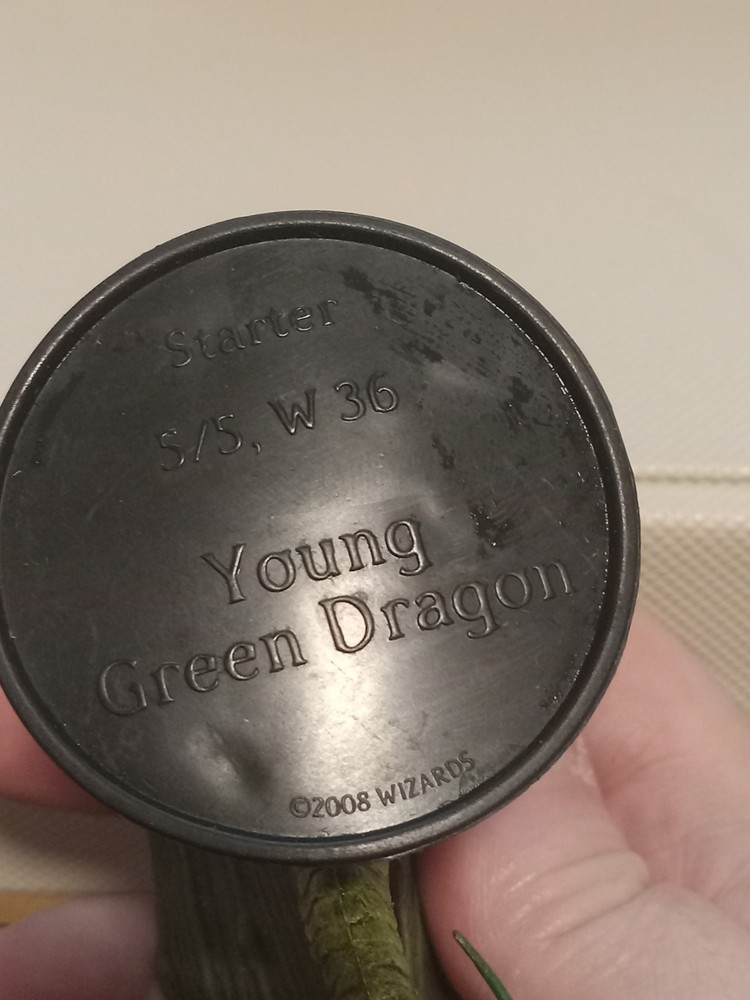 The product is a Dungeons & Dragons miniature young green dragon from the 2008 Wizards Starter Set. Produced by Wizards of the Coast, this collectible miniatures is part of the D&D character family, offering fans and players a unique and detailed addition to their tabletop gaming experience. Perfect for collectors and enthusiasts, this miniature brings a piece of the beloved game world to life in a compact and charming form.