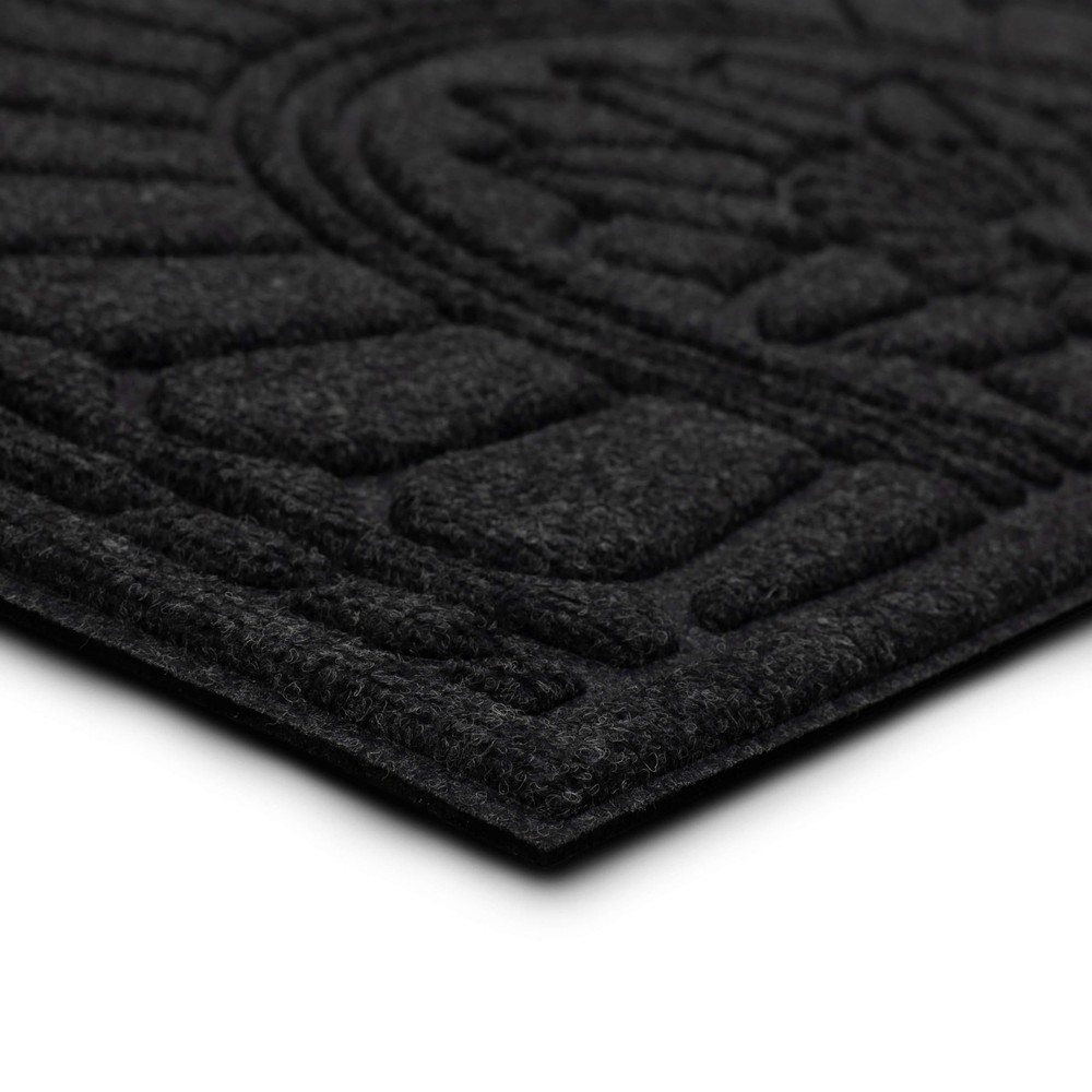 Welcome your guests with the inviting charm of this stylish door mat from , showcasing a functional high/low design in rich color that complements any entryway. Perfect for both indoor and outdoor use, this resilient doormat ensures enduring durability in high-traffic areas and spaces exposed to the elements. Crafted from resilient polyester surface fiber and backed with 100% recycled rubber, this doormat presents an environmentally conscious decor option that is more stylish than ever! The textured polyester surface fiber provides secure traction in all weather conditions, effectively absorbs excess water, and helps remove dirt from shoes before it is tracked indoors. Explore a variety of stylish designs and sizes to bring functional flair to any entryway in your home. DYNAMIC DESIGN: Innovative grooved surface design effectively removes debris from shoes, traps dirt, and channels excess water away before it is brought indoors. EXTRA GRIP: Robust rubber backing provides extra grip to help minimize doormat slipping and sliding on hard surface flooring in high traffic entryways. LOW PROFILE: Low-profile height ensures optimal functionality for any doorway by reducing tripping hazards and entryway obstructions, while allowing doors to open and close freely. EASY CARE & CLEAN: Keep your doormat looking fresh with ease: simply vacuum, sweep, shake out, or rinse off debris with a garden hose, and spot clean when needed; air dry flat. MADE IN THE USA: Proudly made in the USA of U.S. and imported polyester material and recycled rubber ensuring a top-tier sustainable option for every setting.