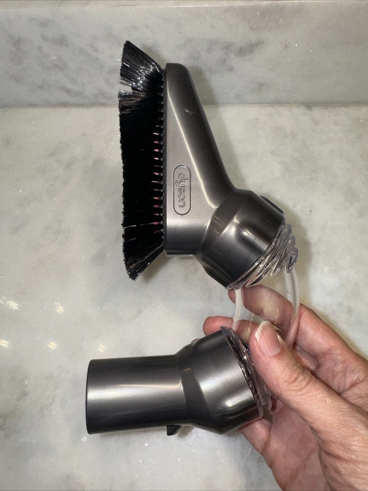 Dyson OEM Genuine Multi Angle Curved Dust Brush Attachment Part - Gray & Clear Description: Enhance your Dyson vacuum's versatility with this Dyson OEM Genuine Multi Angle Curved Dust Brush Attachment in gray and clear. Known as the "Up Top Tool," this attachment is perfect for reaching those hard-to-access areas in your home, like high shelves, ceiling corners, and the tops of cabinets. Features: OEM Dyson Part: Ensures compatibility and quality Color: Gray & Clear Compatible Models: UP13, DC41, DC65, and other compatible Dyson vacuums Condition: Gently used, excellent condition with no flaws Non-smoking home This genuine Dyson attachment is ideal for detailed cleaning, and its multi-angle design makes it easy to clean surfaces from multiple directions. Feel free to reach out with any questions!