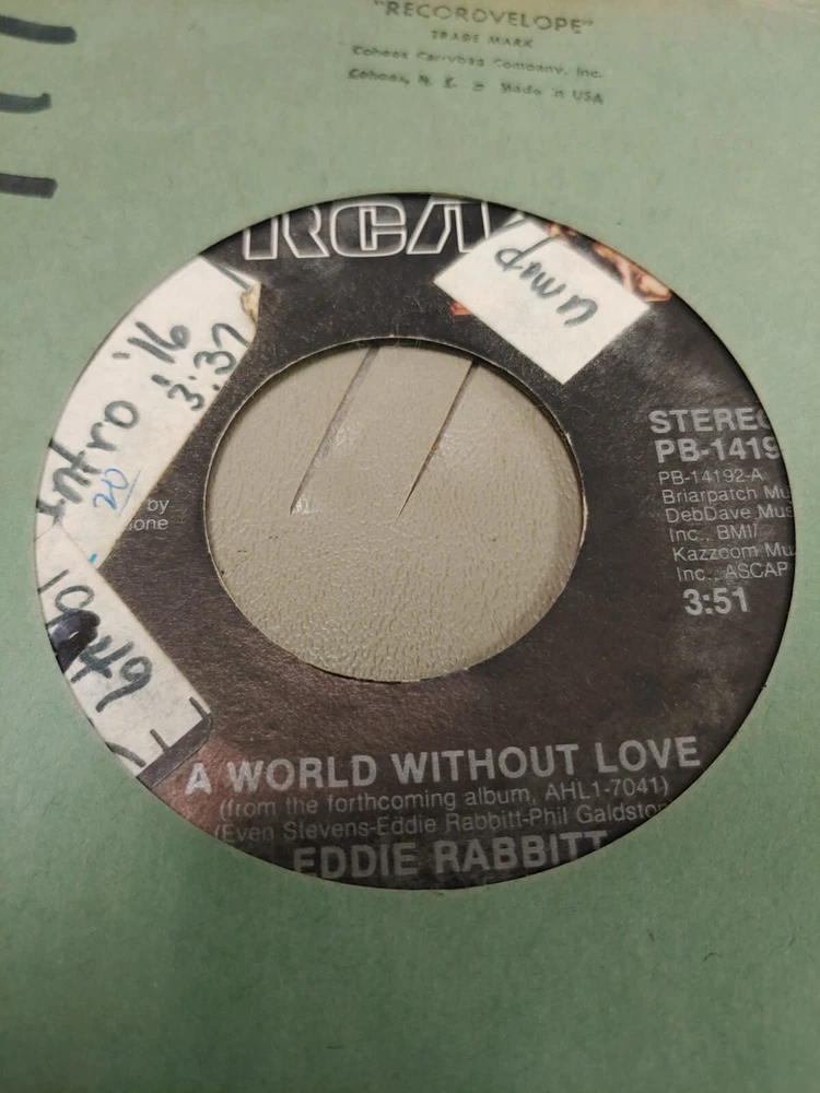 HomeEDDIE RABBITT A WORLD WITHOUT LOVE 7" VINYL 45RPM RARE OOP VERY GOOD