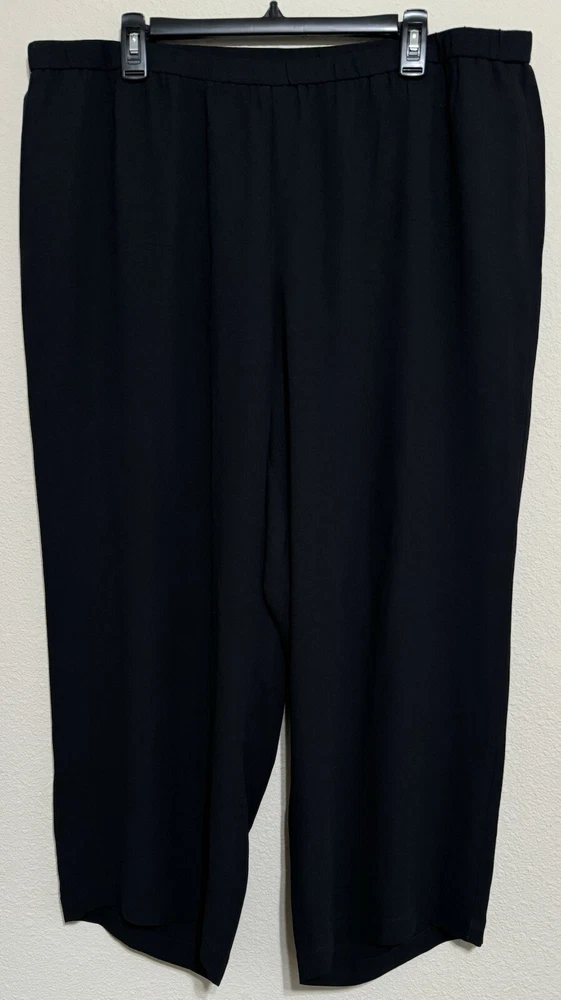 There is a very tiny pin hole from the security tag. It is located down low on left leg by the seam. Please see pic. Elevate your wardrobe with these stunning Eileen Fisher pants. Crafted from 100% silk crepe, these high-waisted capri pants feature a wide-leg design and a relaxed fit, making them perfect for any occasion. The black color and solid pattern make these pants versatile for any event, whether it be a holiday party, formal occasion, a wedding, or a casual outing. The pleated front and stretchy fabric add to the overall elegant look of the pants.