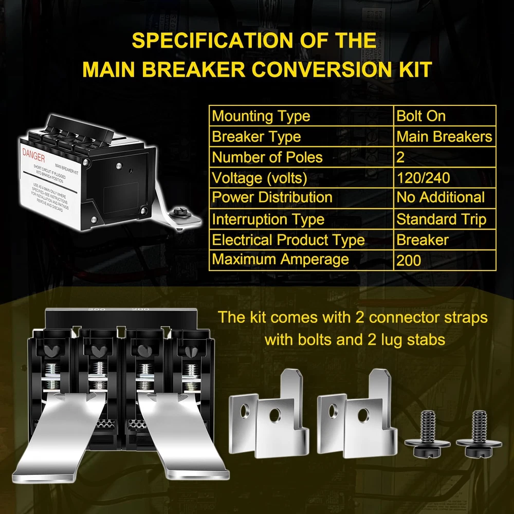 【Technical Specifications】 Current Rating: 200 Amp capacity, designed for high-load electrical systems. Voltage Compatibility: 240 Volt operation, suitable for residential and commercial power distribution. Pole Configuration: 2-pole design for split-phase circuits. 【Thermoplastic Material】 Made of thermoplastic, the kit is lightweight yet durable. Thermoplastic offers good insulation properties and resistance to environmental factors, ensuring reliable performance over time. 【Plug-In Mounting】 MBK200 200 Amp Double-Pole Main Breaker Conversion Kit Plug-in 2 Pole 120/240 Volt for Type EQ Load Centers Replaces EQ9685 【Technical Specifications】 Current Rating: 200 Amp capacity, designed for high-load electrical systems. Voltage Compatibility: 240 Volt operation, suitable for residential and commercial power distribution. Pole Configuration: 2-pole design for split-phase circuits. 【Thermoplastic Material】 Made of thermoplastic, the kit is lightweight yet durable. Thermoplastic offers good insulation properties and resistance to environmental factors, ensuring reliable performance over time. 【Plug-In Mounting 】 The plug-in design enables easy installation and replacement within compatible load centers. It can be quickly and securely inserted into the appropriate slots, reducing installation time and effort. 【Includes Connector Straps and Lug Stabs】 The kit comes with 2 connector straps with bolts and 2 lug stabs, providing the necessary components for a complete and secure electrical connection. 【Main Breaker Conversion】 Specifically designed for converting a main lug load center to a main breaker configuration, enhancing the circuit protection and management capabilities of the electrical system. 【Satisfaction Guarantee】 We are dedicated to delivering professional and heartfelt service to enhance your shopping experience. If you're not completely satisfied with your purchase, simply return it within 30 days. Additionally, we offer a 12-month warranty for your peace of mind. PACKAGE INCLUDES: MBK200 200 Amp Double-Pole Main Breaker Conversion Kit Item Specifics Brand NO-Auto Warranty 1 Year Model NOQP2319 Type 200 Amp Double-Pole Main Breaker Conversion Kit Fitment for residential and commercial power distribution OE/OEM Part Number MBK200 Material thermoplastic Current Rating 200 Amp capacity Voltage Compatibility 240 Volt Pole Configuration 2-pole design for split-phase circuits. EAN Nicht zutreffend Payment 1. Payment methods accepted: Payoneer . Our Payoneer account allows you to pay by credit card, debit card and your paypal balance. 2. We ship items to Your Ebay address .Please make sure your Ebay address is correct before you pay, cause it cannot be changed once the order shipped out. Shipping 1. Item will be shipped out within 1-2 business day after clear payment received. 2. Please make sure shipping address on your ebay account is correct & up-to-date. 3. All of our items are shipped from our AU warehouse. 4. Please feel free to contact us by email if you cannot get your order in time. Please read the shipment and payment detail carefully before you bid. Returns 1. Return to us within 30 days from the delivery date for exchange or refund. Refund will be given as Money back or item exchange (buyer's choice). 2. Return shipping fee is the responsibility of buyer unless the return is a result of our mistake. 3. If you need return, please contact our customer service representative, let us know the detailed problem and send us some pictures for confirmation. Contact Us Please contact us via ebay using" Contact member ". We will respond within 1 business day or less.Thank you for your understanding. Our office hours is as below : - 9:00 a.m. to 6:00 p.m. (GMT +8) of Monday to Friday - 9:00 a.m. to 1:00 p.m. (GMT +8) of Saturday And our office is closed on Sunday and public holidays. We apologize for the late reply during the holidays.Please contact us via ebay using" Contact member ". We will respond within 1 business day or less. Please include your ebay item number or order number in all communications. DESCRIPTION PAYMENT SHIPPING RETURN POLICY CONTACT US MBK200 200 Amp Double-Pole Main Breaker Conversion Kit Plug-in 2 Pole 120/240 Volt for Type EQ Load Centers Replaces EQ9685 【Technical Specifications】 Current Rating: 200 Amp capacity, designed for high-load electrical systems. Voltage Compatibility: 240 Volt operation, suitable for residential and commercial power distribution. Pole Configuration: 2-pole design for split-phase circuits. 【Thermoplastic Material】 Made of thermoplastic, the kit is lightweight yet durable. Thermoplastic offers good insulation properties and resistance to environmental factors, ensuring reliable performance over time. 【Plug-In Mounting 】 The plug-in design enables easy installation and replacement within compatible load centers. It can be quickly and securely inserted into the appropriate slots, reducing installation time and effort. 【Includes Connector Straps and Lug Stabs】 The kit comes with 2 connector straps with bolts and 2 lug stabs, providing the necessary components for a complete and secure electrical connection. 【Main Breaker Conversion】 Specifically designed for converting a main lug load center to a main breaker configuration, enhancing the circuit protection and management capabilities of the electrical system. 【Satisfaction Guarantee】 We are dedicated to delivering professional and heartfelt service to enhance your shopping experience. If you're not completely satisfied with your purchase, simply return it within 30 days. Additionally, we offer a 12-month warranty for your peace of mind. PACKAGE INCLUDES: MBK200 200 Amp Double-Pole Main Breaker Conversion Kit Item Specifics Brand : NO-Auto Warranty : 1 Year Model : NOQP2319 Type : 200 Amp Double-Pole Main Breaker Conversion Kit Fitment : for residential and commercial power distribution OE/OEM Part Number : MBK200 Material : therm