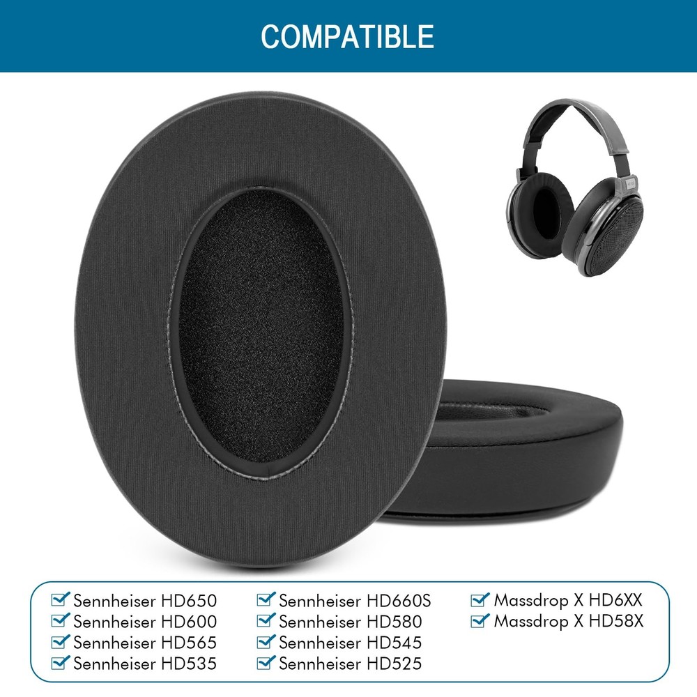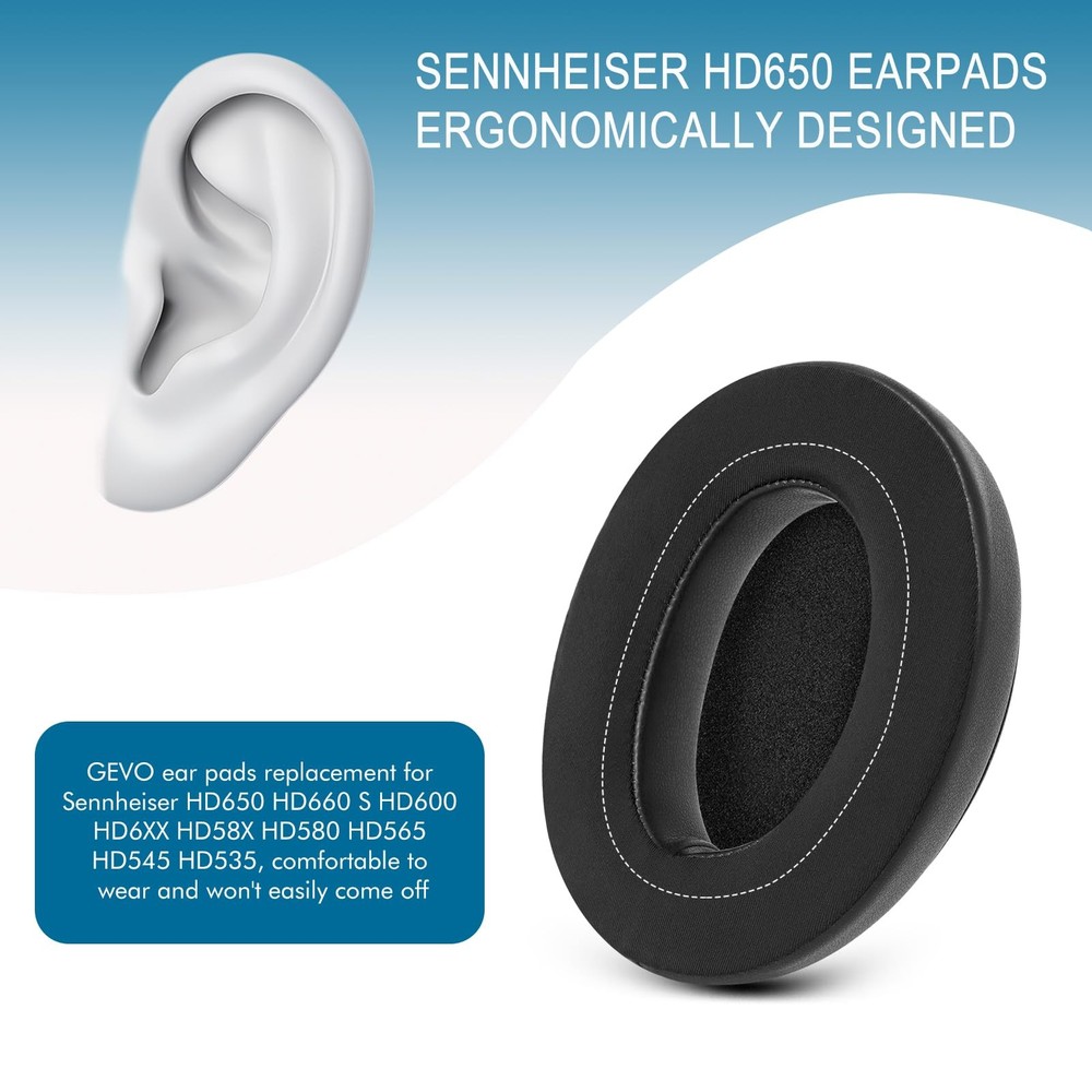 Earpads for Sennheiser HD650/HD600/HD660S/HD545/HD525/HD535 Headphones, Velour Ear Pads Cushions Replacement for Massdrop X HD6XX/HD58X and HD580/HD565 Jubilee Headset 【Compatibility】Replacement Earpads Compatible with Sennheiser HD650 HD600 HD660S HD545 HD525 HD535 headphones, also compatiable with Massdrop X HD6XX/HD58X and HD580/HD565 Jubilee headphones. Please confirm your headset model before purchase. 【Cooling-Gel Feature】The replacement earpads for Sennheiser HD650 headphones are crafted with premium Cooling-Gel fabric and high-density memory foam. The foam is soft and comfortable, enhancing the overall comfort and quality of your earphones.Wearing headphones in the hot summer keeps your ears cool. 【Noise Isolation】HD650 replacement earpads – the performance is so good for isolating noise, give you bass and top-notch comfort. These ergonomically crafted ear cushions for Sennheiser Headphone fit perfectly, won't easily come off, offer comfortable wearing, and are soft yet durable. 【More Easy Installation】Simply remove the old ear pads and put the new ear pads into the ear cups of the earphones, snap the ear pads for headphones into the earphones; the ear cups can be replaced without auxiliary tool, but please be patient while installing. 【What You Will Get】Package includes: 2 x earpads replacement for sennheiser HD650, 2 x wipe pads.For the earpads we provide 1 year from the date of purchase. If you have any questions please contact us at any time.