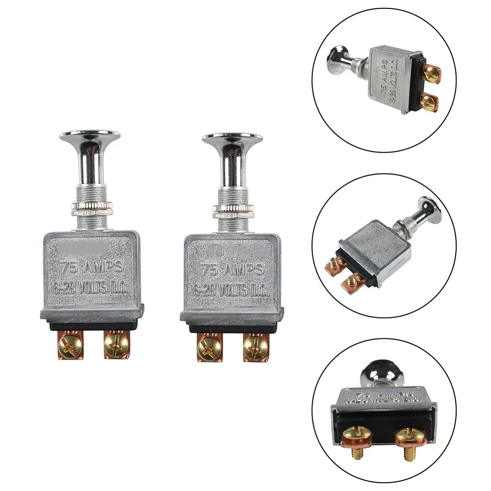 Product Description Features: *Heavy Duty 75A Push Pull Switch 6-28V DC: This switch is designed for heavy-duty applications, with a maximum rating of 75 Amps at 6-28 Volts DC. It is for high-power electrical systems. *2 Position On-Off: The switch features a 2-position design, allowing you to easily turn the circuit on and off as needed. It provides a convenient and reliable way to control the power supply. *The switch is equipped with a heavy-duty, which not only enhances its appearance but also provides a comfortable grip for easy operation. *Copper Screw Terminals and Zinc Alloy Body: The switch is built to last, with copper screw terminals that ensure secure connections and a zinc alloy body that can withstand harsh conditions. *Wide Application: This switch can be used in various push button switch applications, including cars, trucks, buses, ATV, RV, boats, marine, motorcycles, airplanes, helicopters, and heavy equipment. *Product function: mainly realize the start, stop, reversing and other functions of the main power supply or important components. Specifications: *Part Name:Heavy Duty Push Pull On-Off Switch *Material: switch body: zinc alloy; terminal: copper; knob: chrome-plated *Size: 8.3*3.6*2.2CM *Color: silver Product current: 75AMP Product voltage: 6-28V Product pin: 2P Product installation size: mounting rod length 5/8 inch(approximately equal to 15.875 mm), Diameter: 15/32 inch(approximately equal to 11.906 mm), Opening size: 12mm Package Content: 1*Heavy Duty Push Pull On-Off Switch Note: 1. The real color of the item may be slightly different from the pictures shown on website caused by many factors such as brightness of your monitor and light brightness. 2. Please allow slight manual measurement deviation for the data. Payment Payment must be completed within 5 days. If you have any problems about payment, please contact us via ebay message. Delivery details We only ship to confirmed ebay Order addresses. Please comfirm that your Order address is in line with your shipping address. Please kindly note that the c ombined shipping is not provided because the shipping fee is calculated by weight. Also, the each additional item means exactly the the same color and size. It takes about 7 -15 working days to US; about 10-30 working days to other countries. Transit time may be a little delayed because of the bad weather and customs inspection . If you do not receive your item within 30 working days since payment finished, please contact us immediately for further assistance. Contact us We strive for 100% customer satisfaction! Positive Feedback is very important to us. If you have any questions, p lease feel free to contact us via "Ask seller a question" . We will reply your email within 24 working hours.