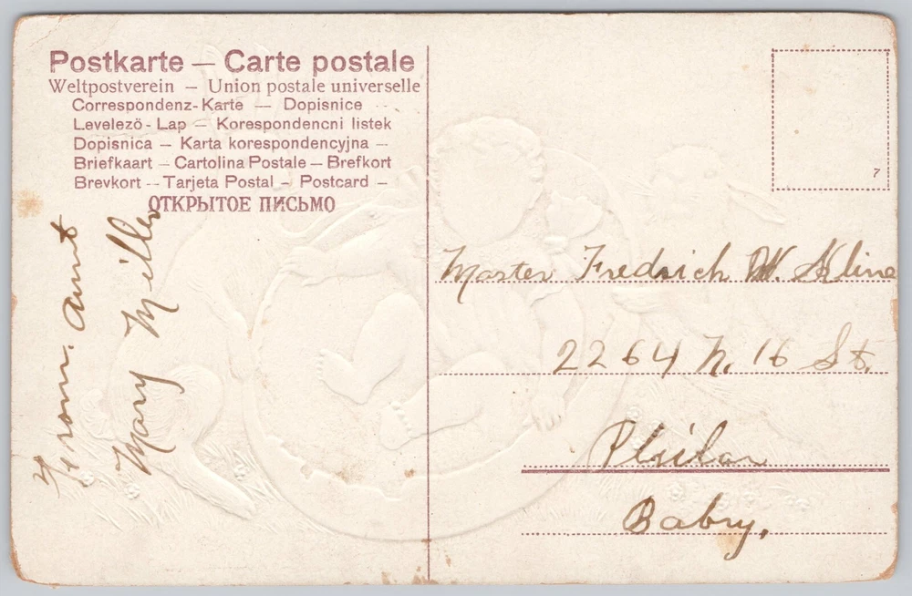 Postage Condition: Posted Unit of Sale: Single Unit Era: Divided Back (1907-1915) Type: Printed (Lithograph) Original/Licensed Reprint: Original Size: Standard (5.5 x 3.5 in) Theme: Animals, Children & Infants, Greetings Subject: Rabbit Features: Divided Back, Embossed Seller Notes: “Border and corners are worn. Top right corner is bent. Very Fine VF condition.” Occasion: Easter