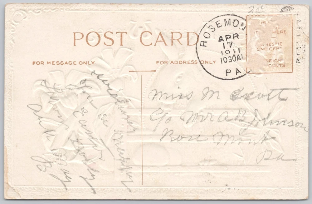 Occasion: Easter Seller Notes: “Border and corners are worn. Top left and bottom right corners are bent. Very Fine VF condition.” Type: Printed (Lithograph) Size: Standard (5.5 x 3.5 in) Subject: Puppies Features: Divided Back, Embossed Era: Divided Back (1907-1915) Original/Licensed Reprint: Original Unit of Sale: Single Unit Postage Condition: Posted Theme: Animals, Greetings