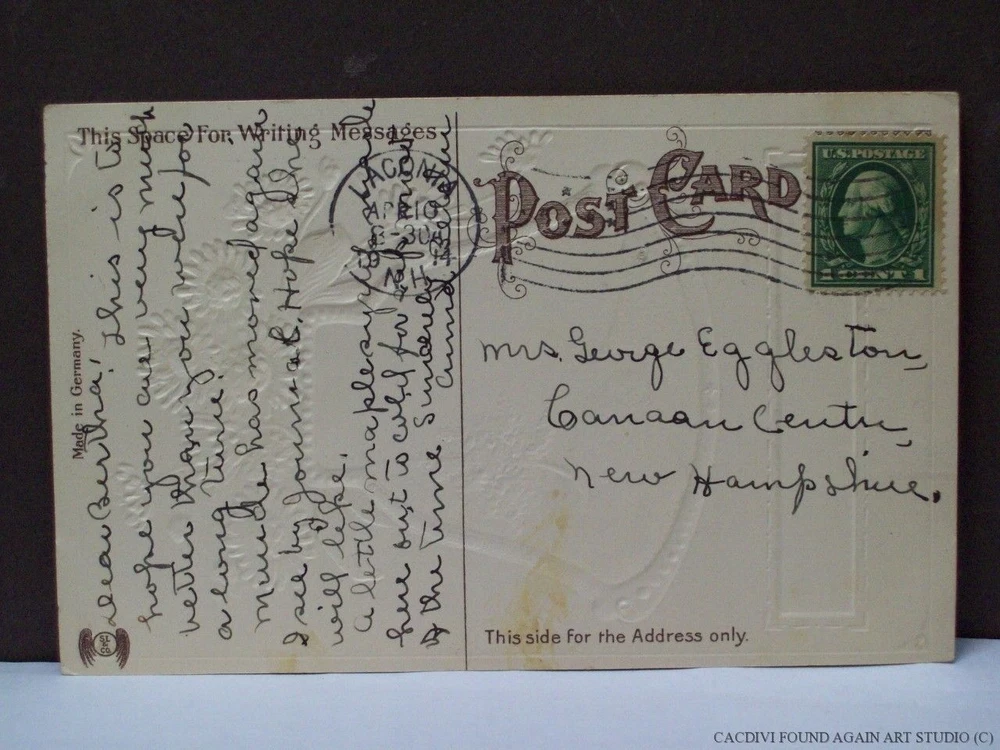 Easter Postcard Rabbit Cute Kids Mailman Messenger Boy Hatbox for Girl Gold Gilt This listing is for the postcard pictured only. Please check the pictures to examine the detail, checking the pictures and item description for condition. DESCRIPTION: This Easter greeting holiday postcard is embossed with gold gilt highlights. It features chubby cheek children. The little boy is delivering a round package that looks like a hatbox to me. While the cute little girl is reaching out to receive it and the brown bunny rabbit is munching some greens. MESSAGE: General CAPTION: A joyous Easter PUBLISHER: Whitney STAMP: One cent Washington CANCEL: Tiffin Ohio CONDITION & TERMS By bidding / purchasing buyers understand & accept that: items are represented to the best of my ability, are used or aged, and may contain unseen faults the buyer will take full responsibility for. All items are as found and I do not sell reproductions. This item is preowned, not new, and contains imperfections. The corners are lightly bumped with creases. Due to variations between computers, color may vary. The card is a cream color from age with few spots. Please contact me prior to bidding to clarify any questions or concerns. SHIPPING Shipments start at USPS Ground Advantage. This rate allows me to use extra packing material and safely ship your item quickly. Items that are 250.00 or more will require signature confirmation. Free shipping when you choose USPS Ground Advantage when shipped within the USA. Delivery time is a estimate that does not consider weather delays, holidays, or unexpected events. Note to Florida Residents State Sales Tax will be added to purchases. International purchasers it is your responsibility to be aware of any import or customs fees your country may apply to your incoming packages. I will not falsify information on the customs forms. International purchasers will make payment by Paypal only. The International Shipping I offer is First Class Package International or Priority Mail International. Please click on to the shipping and payment tab to use the international postage calculator. If you wish your item to be shipped, Registered Mail, this will be an additional charge added to the postage rate. I AM HAPPY TO COMBINE AUCTIONS! USA SHIPMENTS ARE POSTED WITH A TRACKING NUMBER! COMMUNICATION If you have any questions, please contact me early before the listing nears its end. Thank you and happy bidding! inkfrog terapeak