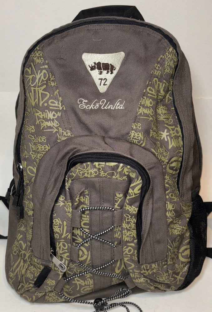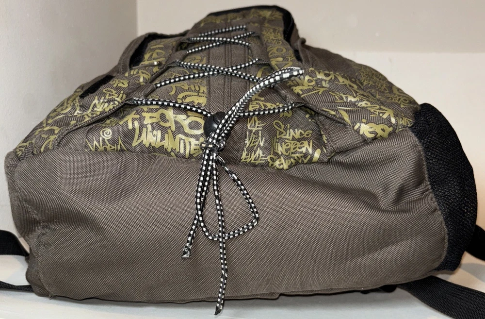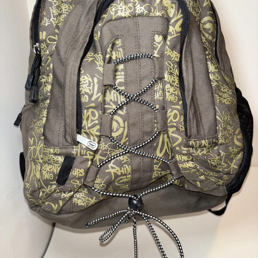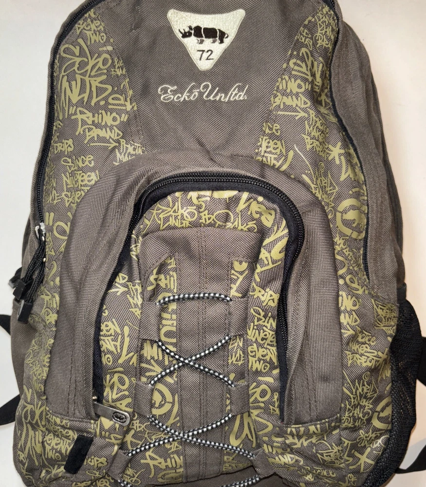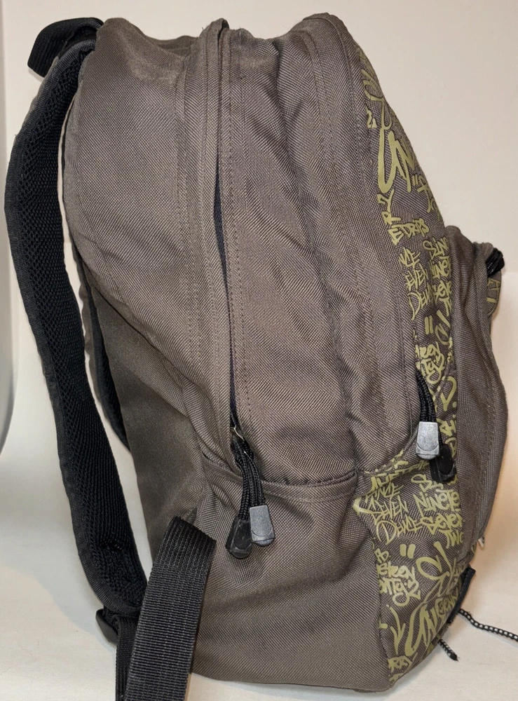 There are 2 flaws. One tear on the bottom side and some scratches on the front just to the side of the logo. I have taken close ups of both to show the condition. Beyond that just normal light wear. This Ecko Unltd. backpack is a must-have for anyone looking for a stylish and functional accessory. With a unique graffiti print and vintage feel, this backpack is perfect for those who want to make a statement. It features a zip-around closure, adjustable straps, and several pockets both inside and out for ample storage space. The brown and green color scheme and canvas lining material add to its durability and versatility. Whether you're a skater, hip hop enthusiast, graffiti artist or just someone who appreciates good art, this backpack is sure to impress. Its lightweight design makes it easy to carry around all day, and the audio pocket is perfect for storing your favorite tunes. This one size fits all backpack is made of high-quality polyester material, making it both strong and fashionable. Please look at the pictures for the item for sale. I have tried to capture the condition as much as possible but if you would like more pictures, please feel free to contact me and I will try to accommodate as best I can. Fast shipping always! Thank you for looking! *Offers that are asking close to 50% or more off of the listed price will automatically be declined. All listed items are constantly decreased in price the longer they sit.