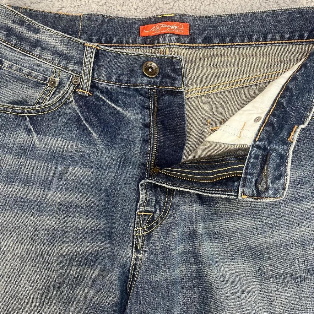 Ed Hardy Denim Jean Shorts Men’s Size 34 Christian Audigier Inseam 13.5”. Actual measurements may vary from the tag. Please measure your favorite garment to ensure a proper fit. Free returns for domestic buyer. Item must be the same condition as it was delivered for a refund.