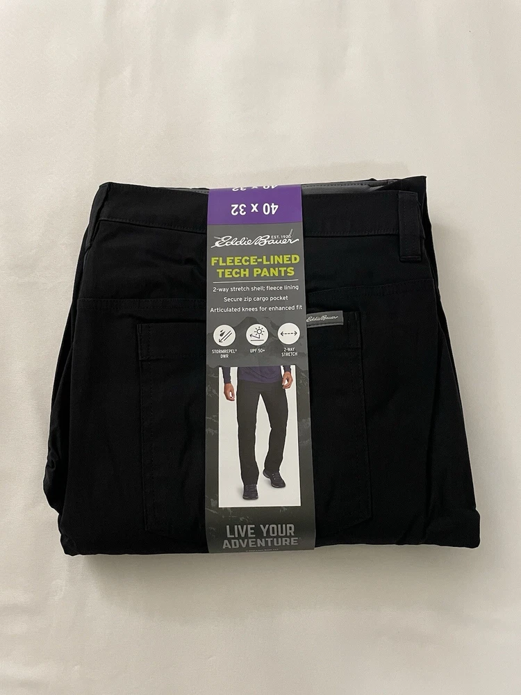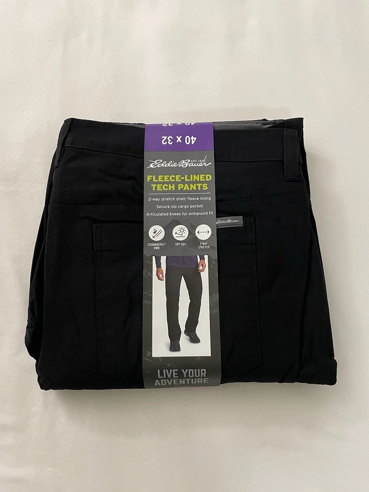 Eddie Bauer Fleece Lined Pants with Zipper Pocket Men’s 40 x 32 Black