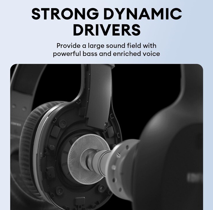Enjoy Premium Sound: Punchy bass with large sound field offered by 40mm NdFeB driver delivers and Qualcomm aptX Extended Playtime: The headphones provide over 55 hours of high-quality playback time Clear Call: Built-in microphone with Qualcomm cVc 8.0 Noise Cancellation, the headphones pick up voices and eliminates environmental noise, leading to clearer communication during calls All-Day Comfort: the earmuffs made of soft leather